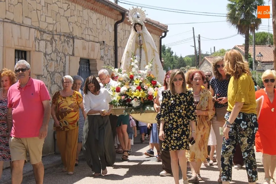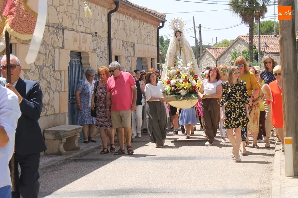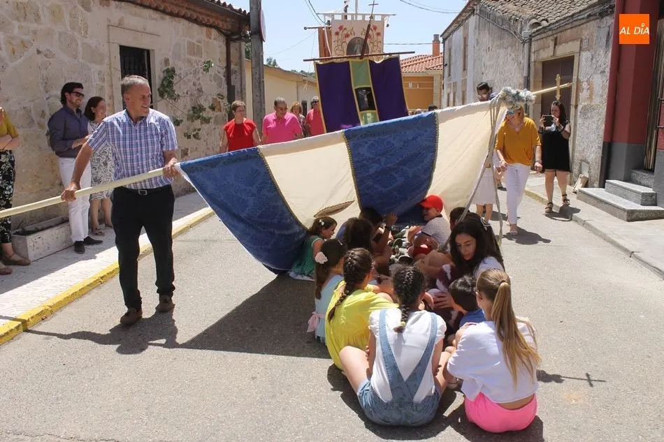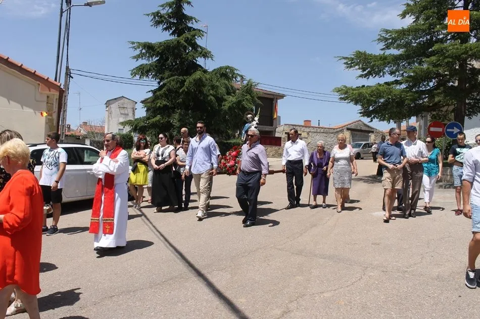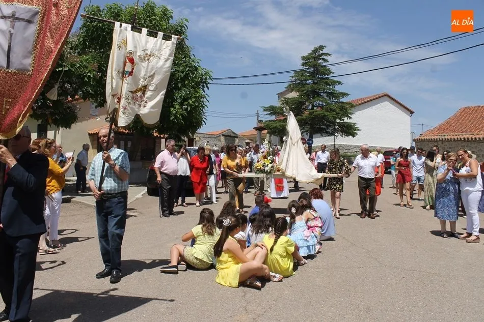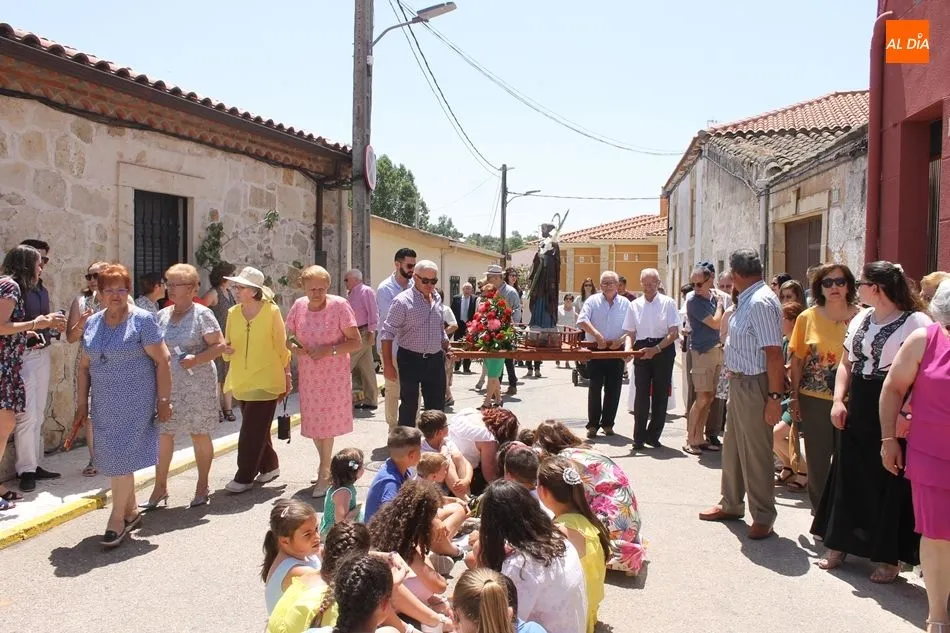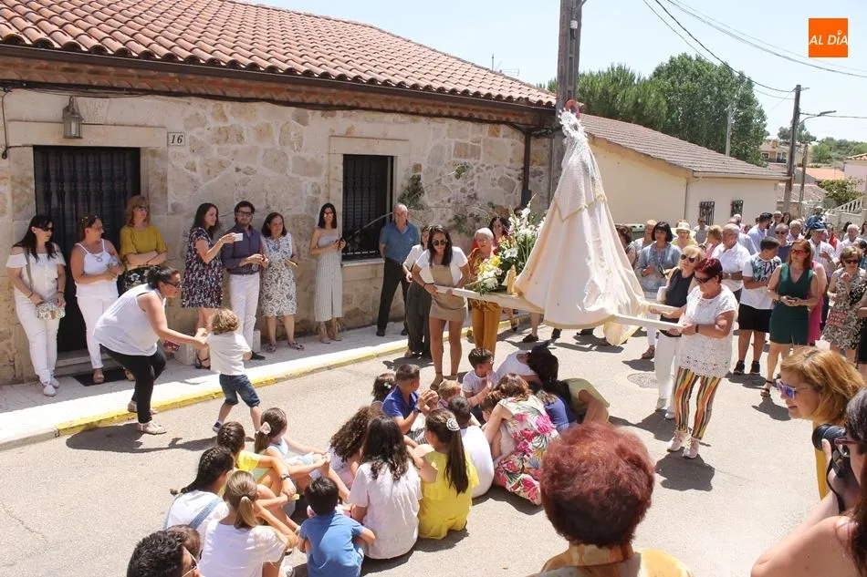 Al término, las imágenes de San Pedro y la Virgen portadas a hombros por los vecinos han recorrido el municipio, realizando varias paradas en las que los más pequeños, sentados en el suelo, reciben la protección de San Pedro y de la Virgen, cuyas imágenes pasan por encima de sus cabezas.