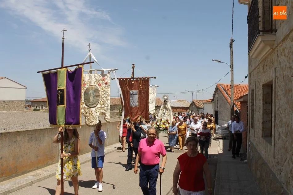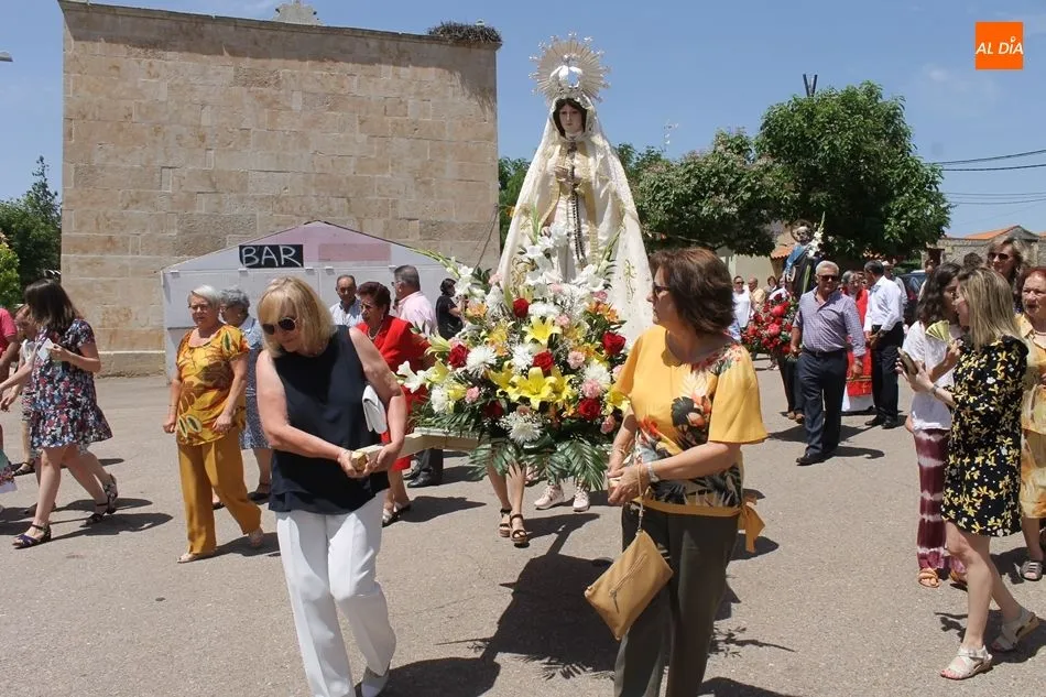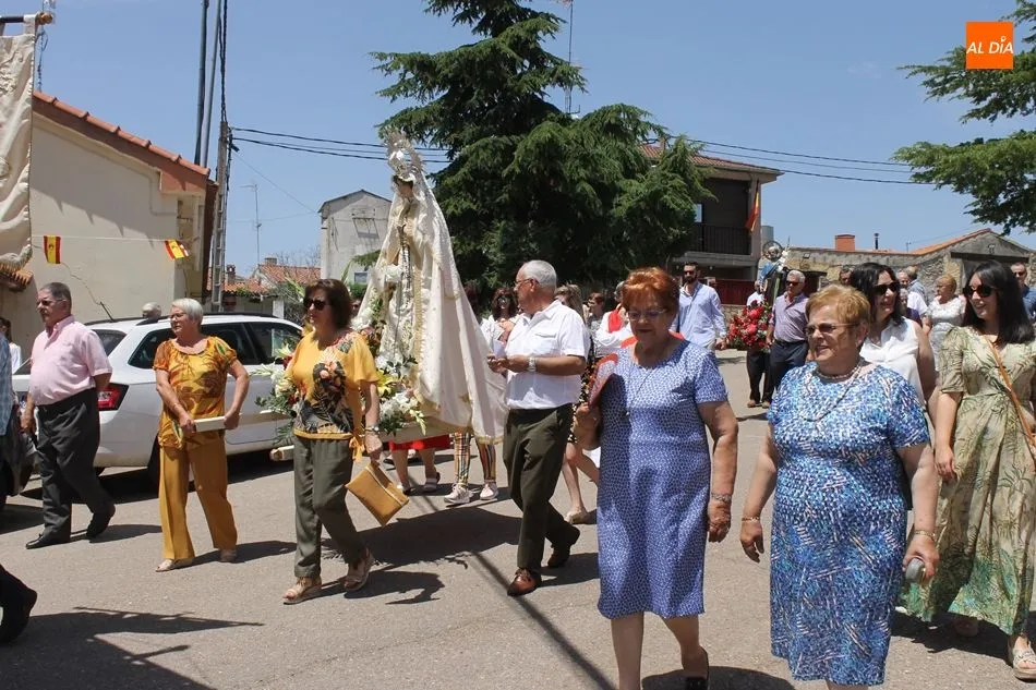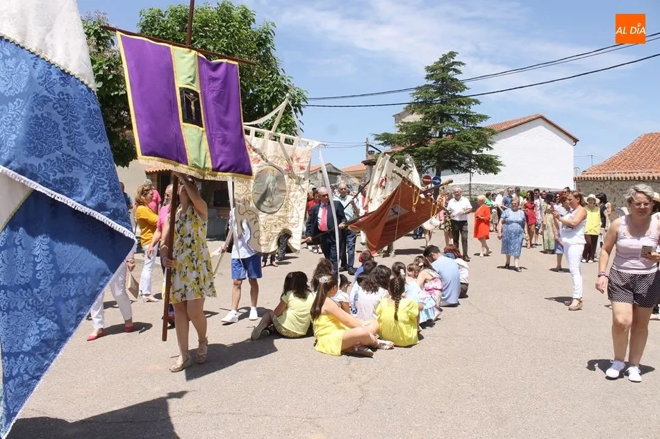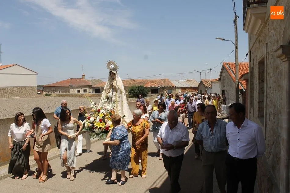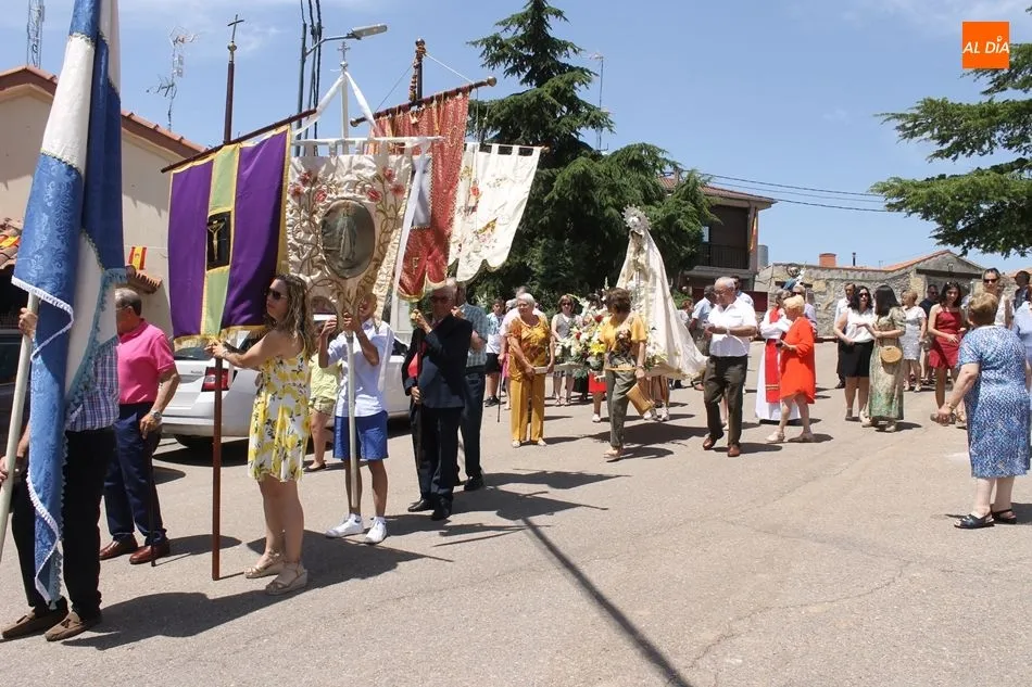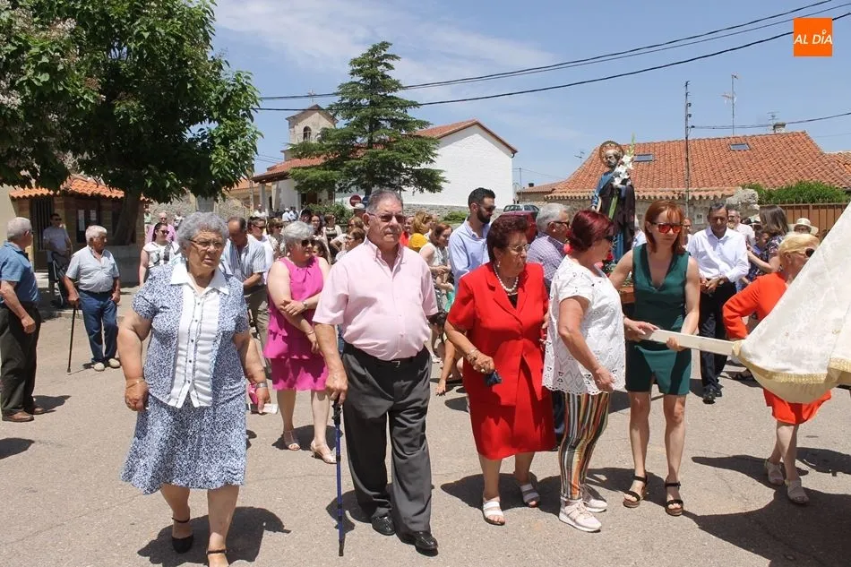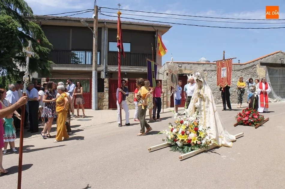 Al término, las imágenes de San Pedro y la Virgen portadas a hombros por los vecinos han recorrido el municipio, realizando varias paradas en las que los más pequeños, sentados en el suelo, reciben la protección de San Pedro y de la Virgen, cuyas imágenes pasan por encima de sus cabezas.