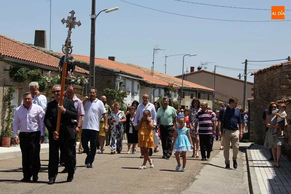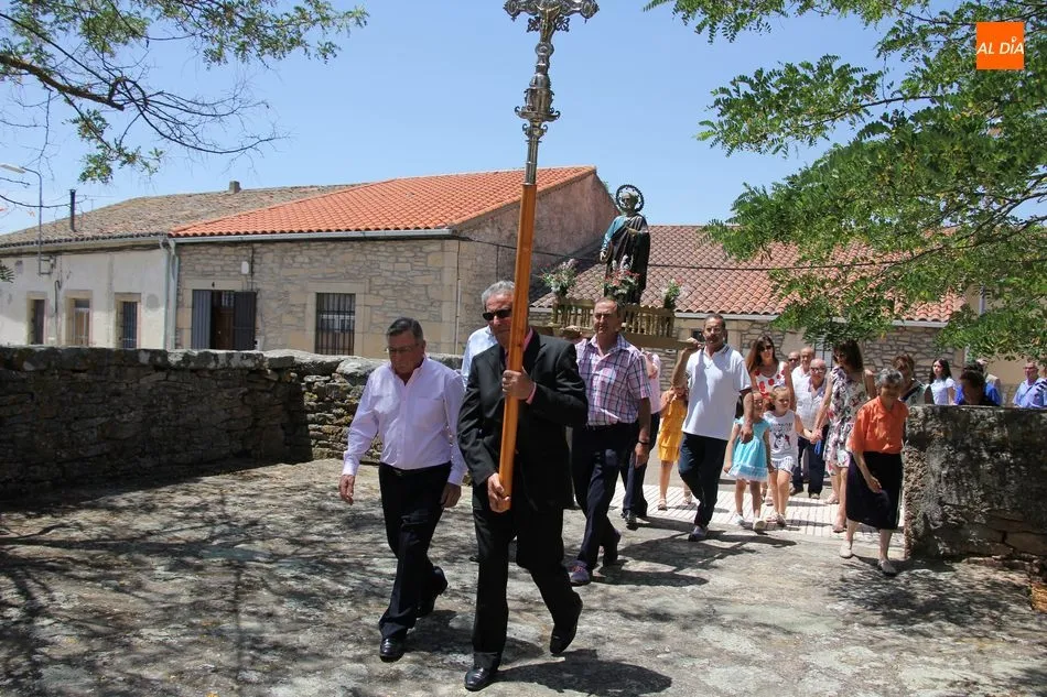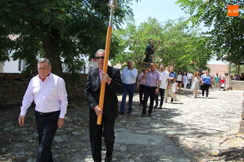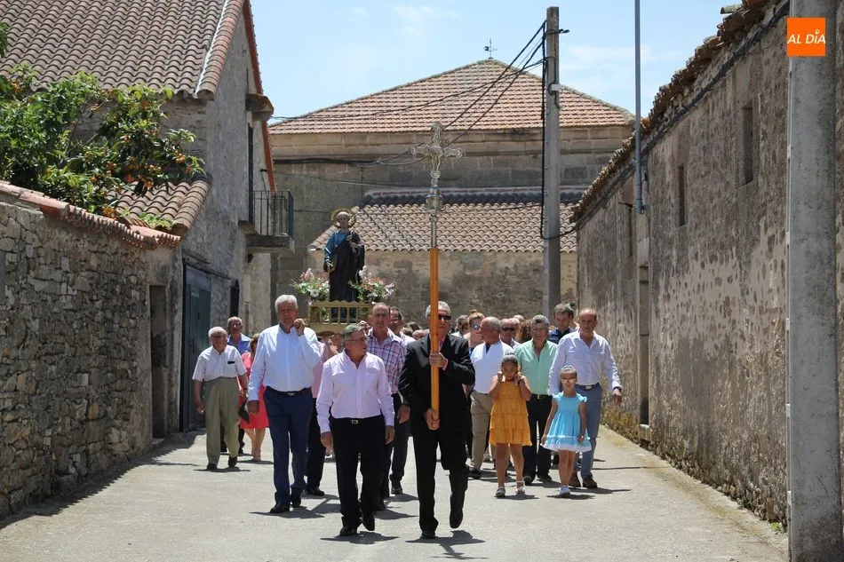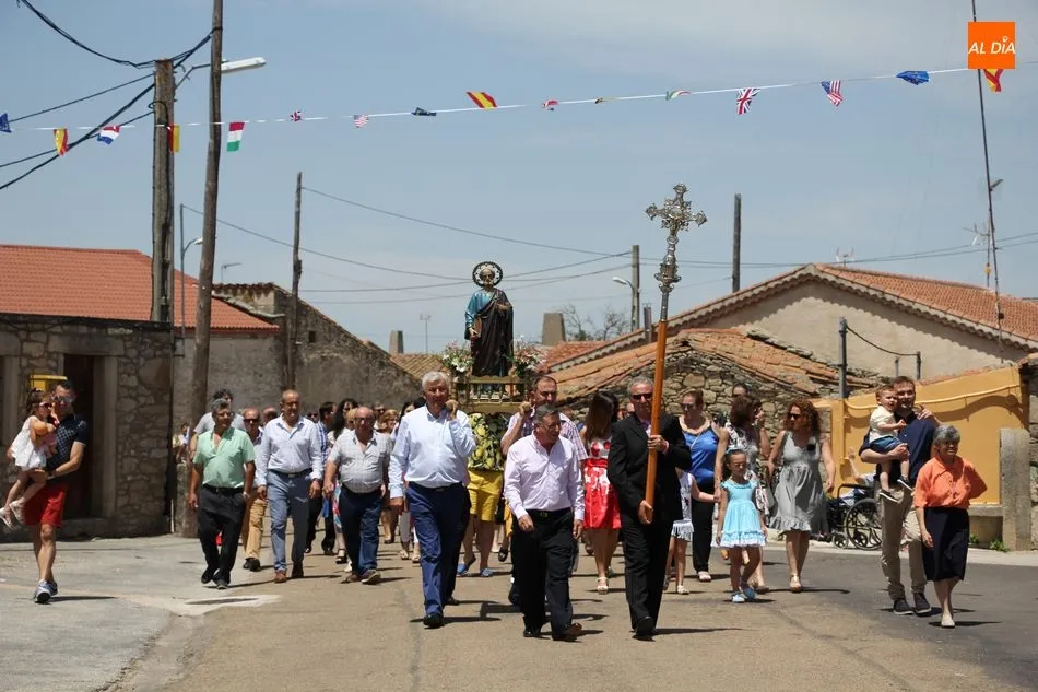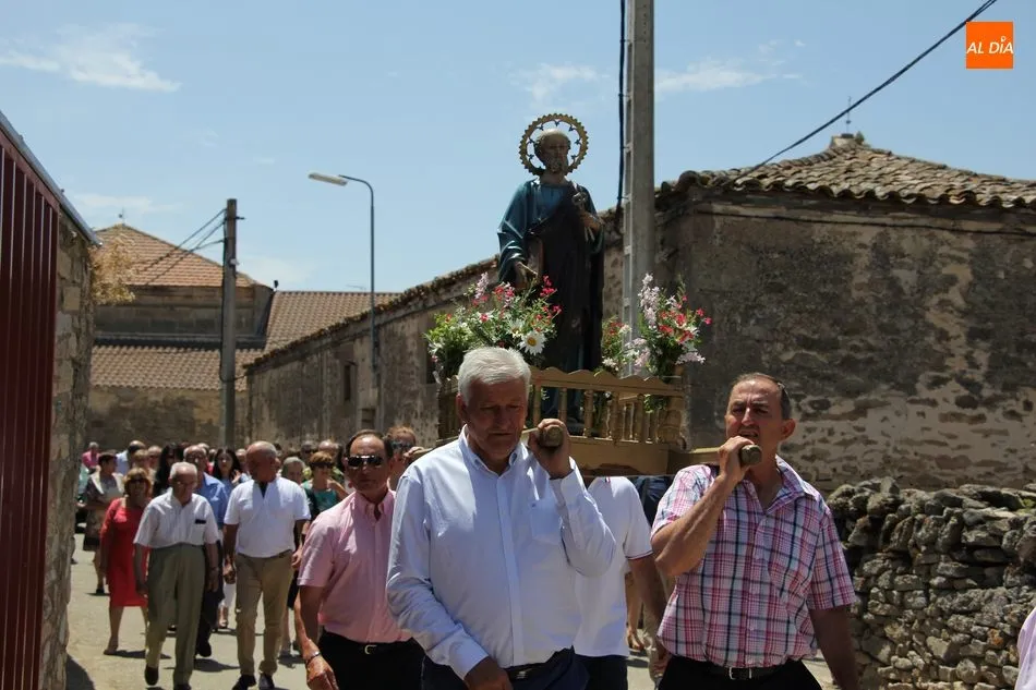 Los vecinos de Villar de Peralonso se dieron cita este sábado, día grande de las fiestas en honor a San Pedro, en la iglesia parroquial de Nuestra Señora de la Asunción para rendir honores a su patrón. Una vez concluida la eucaristía, y al toque de campanas, la imagen del santo salía del templo en procesión, portada a hombros y escoltada por gran cantidad de vecinos durante su recorrido por las calles de la localidad hasta regresar de nuevo a la parroquia.