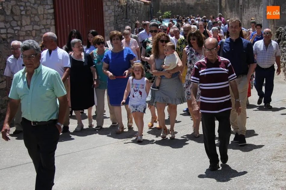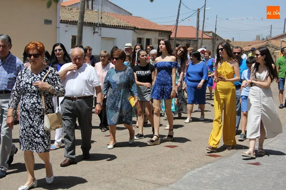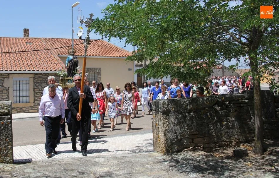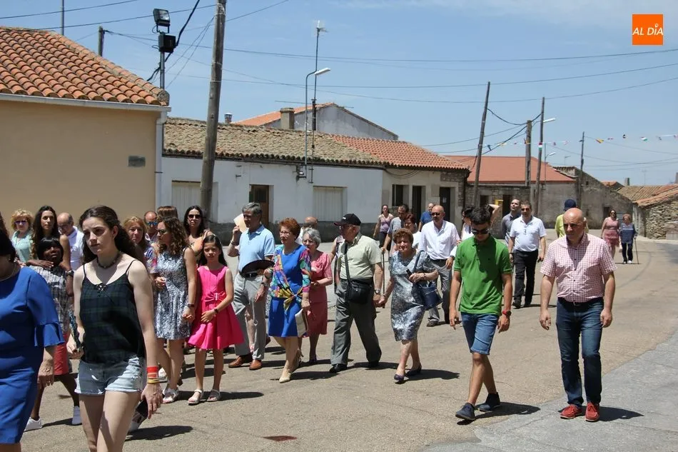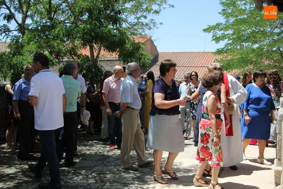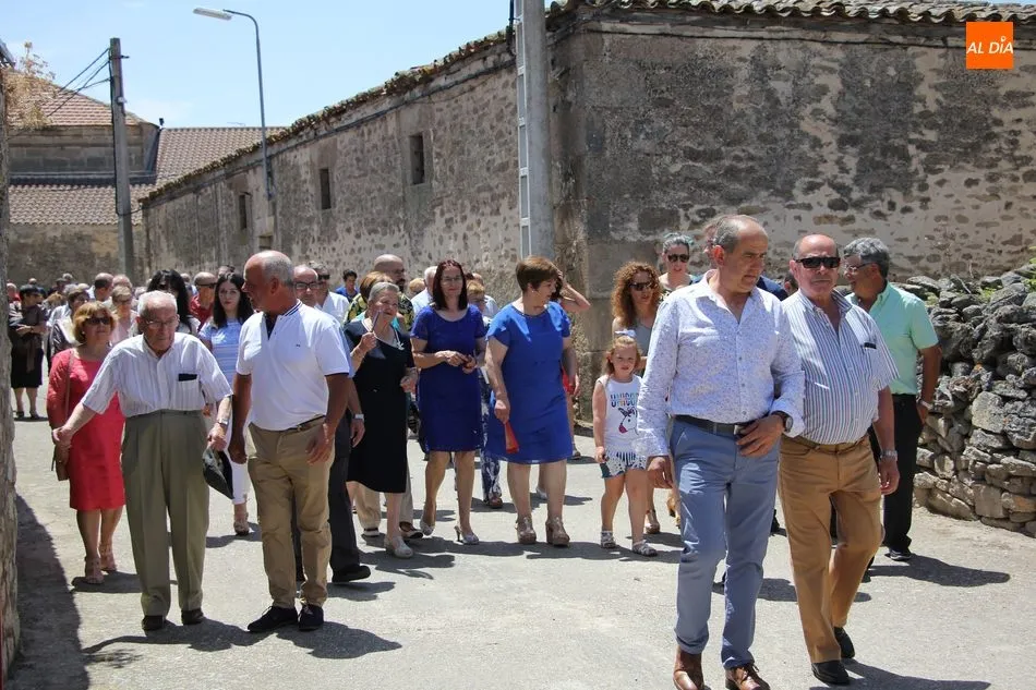 Los vecinos de Villar de Peralonso se dieron cita este sábado, día grande de las fiestas en honor a San Pedro, en la iglesia parroquial de Nuestra Señora de la Asunción para rendir honores a su patrón. Una vez concluida la eucaristía, y al toque de campanas, la imagen del santo salía del templo en procesión, portada a hombros y escoltada por gran cantidad de vecinos durante su recorrido por las calles de la localidad hasta regresar de nuevo a la parroquia.