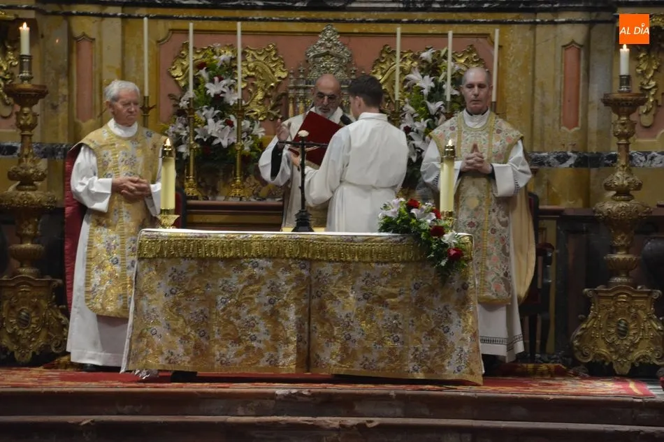 La Junta de Capilla ha celebrado este domingo la Fiesta Sacramental conforme al rito tradicional de la Universidad de Salamanca. El acto ha tenido lugar en la Capilla de las Escuelas Mayores y ha contado con la asistencia de una amplia representación de la comunidad universitaria.