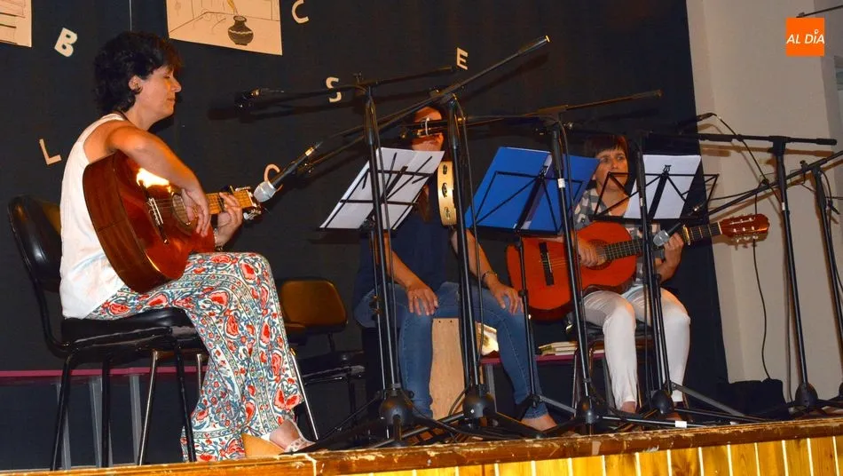 A la lectura de los relatos se unió la música del grupo local 'Jóvenes con Esperanza'. Con el acompañamiento de dos guitaras y un cajón, Ana Isabel, María Ángeles y Magdalena ofrecieron un repertorio de conocidos temas de música pop española de los últimos años.