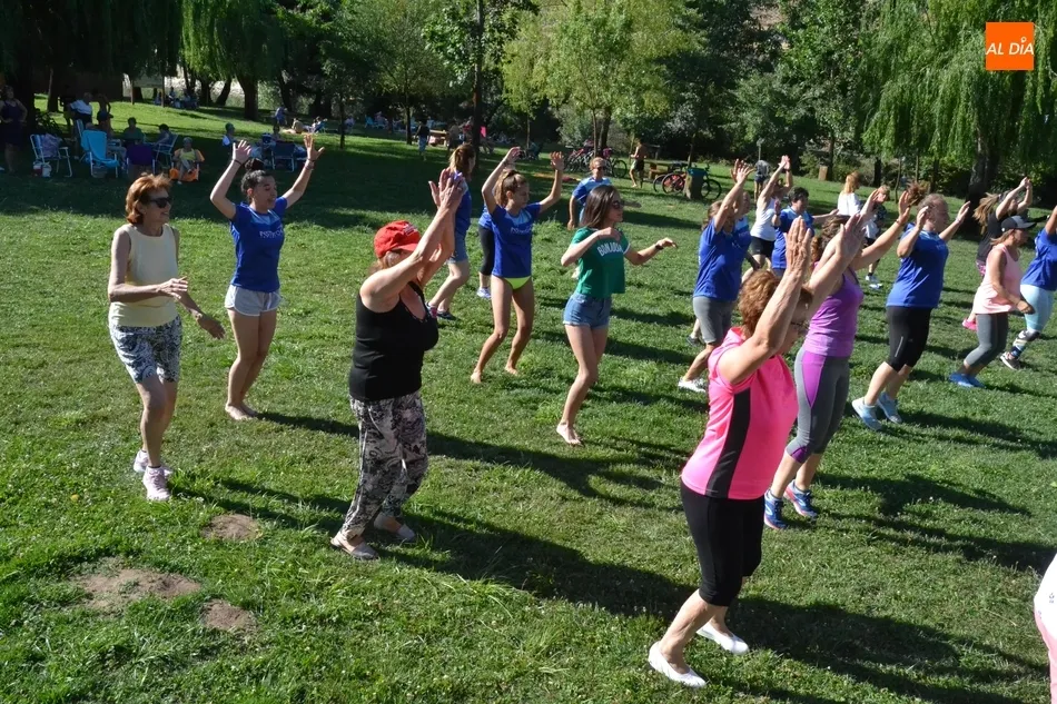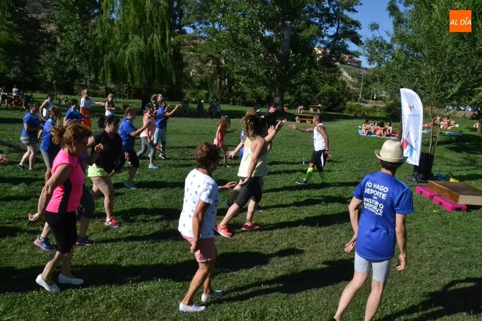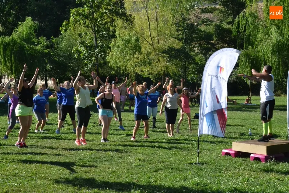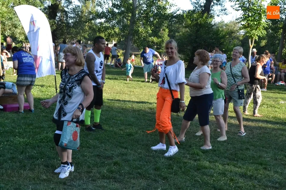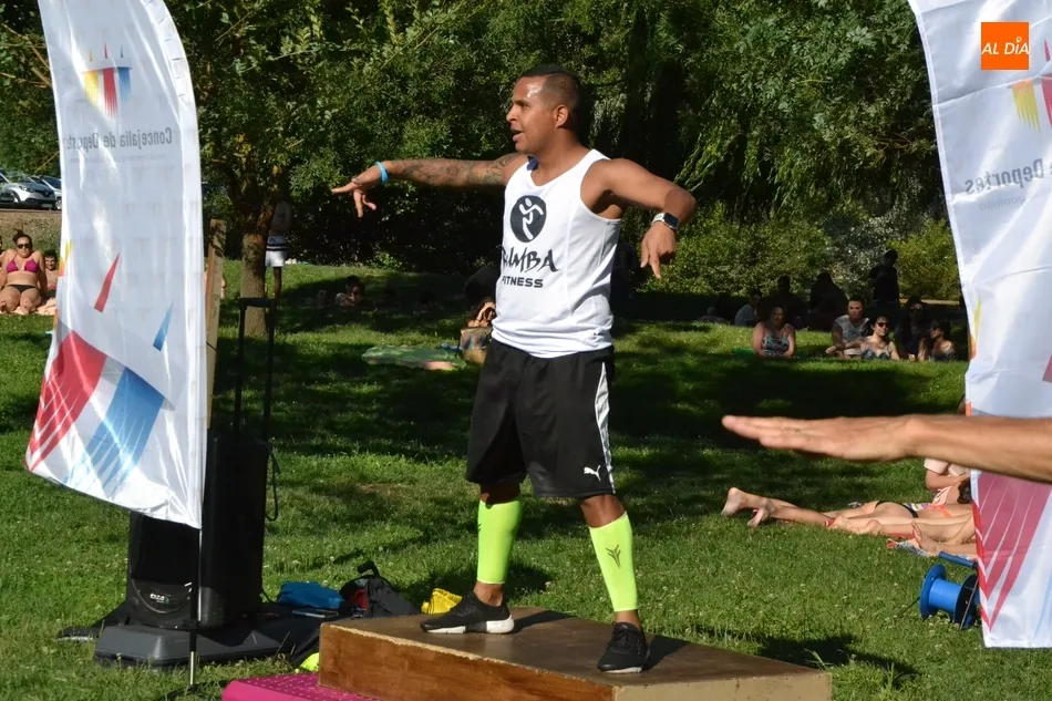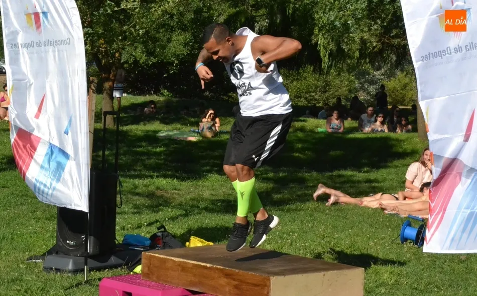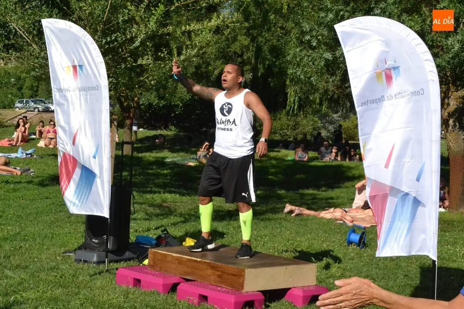La isla de El Picón acogió en la calurosa tarde del martes la primera de las sesiones de actividades físicas que se desarrollarán en este emplazamiento durante este mes de julio por iniciativa de Instinto Deportivo, la empresa gestora del Centro Acuático y Deportivo de Ciudad Rodrigo, con la colaboración de la Concejalía de Deportes del Ayuntamiento mirobrigense.