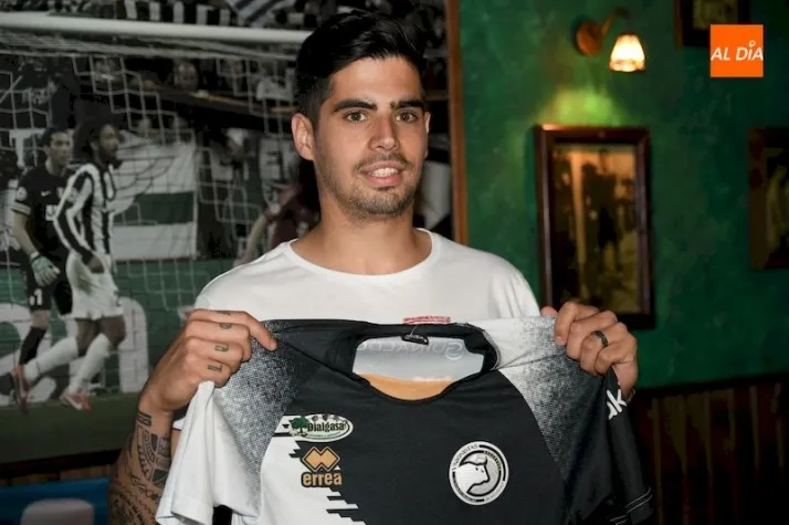 El portero gallego fue presentado como nuevo jugador de Unionistas de Salamanca y posó por primera vez con sus nuevos colores
