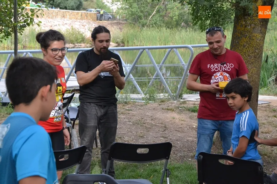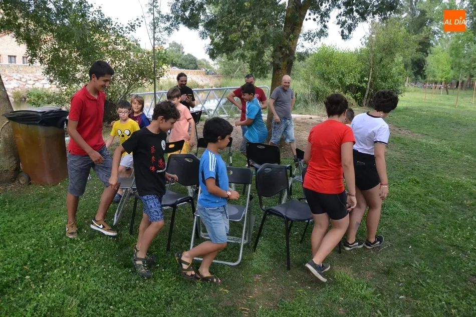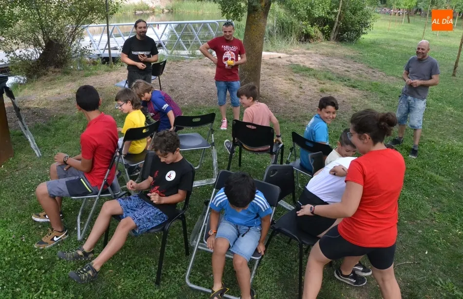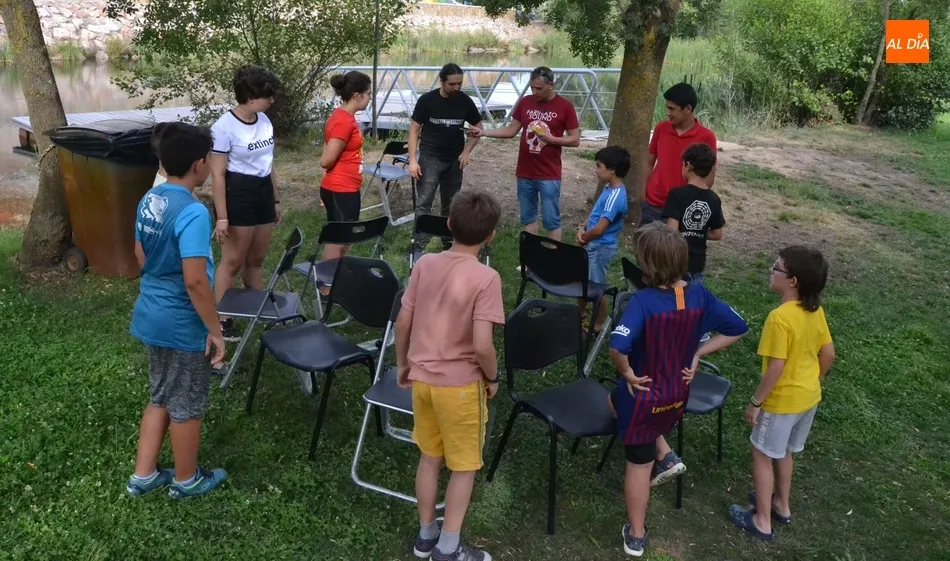 A la Escuela se han apuntado una decena de niños y jóvenes, que durante esta semana realizarán una inmersión musical desde diferentes puntos de vista, todo ello con un tono lúdico (por ejemplo, las imágenes pertenecen al momento en que estaban jugando a las sillas musicales junto al Canal de La Concha).