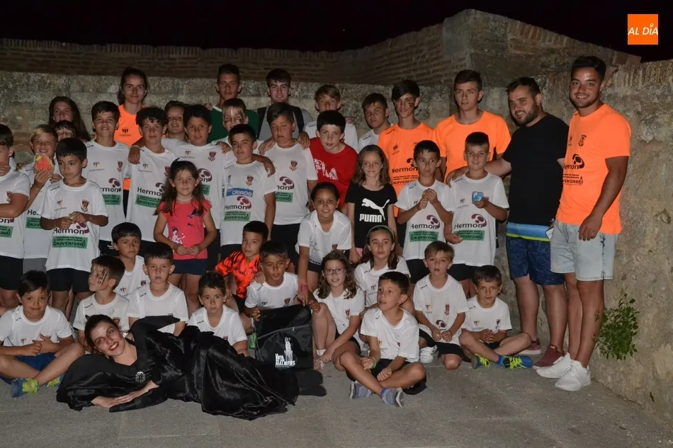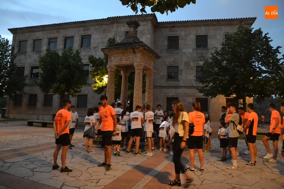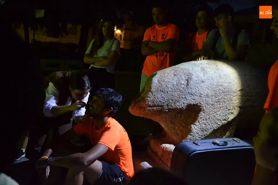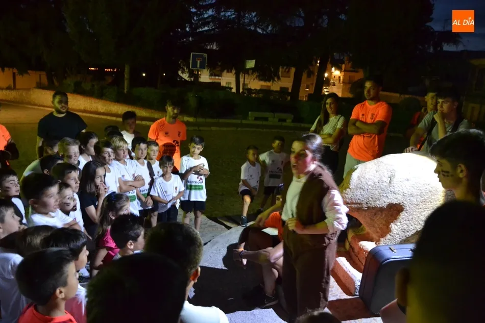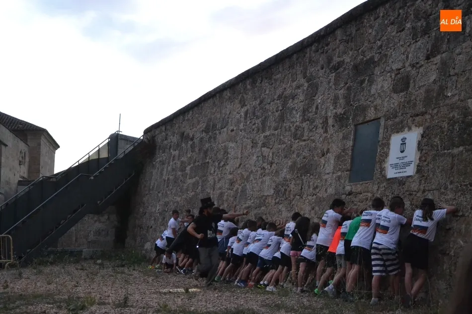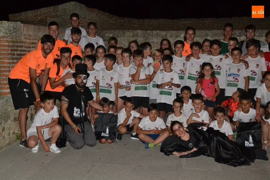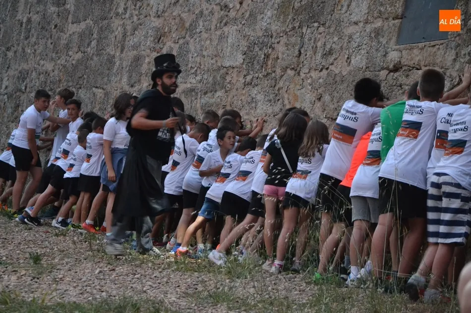 El Miróbriga Campus que promueven los jugadores del Ciudad Rodrigo CF Gabri de Aller y David Risueño tuvo en la noche del miércoles la primera de las actividades nocturnas de esta edición, que reunió a todos los chavales inscritos esta semana, así como a sus monitores, en el centro histórico para disfrutar de una versión especial de la popular Ruta de los Malditos.