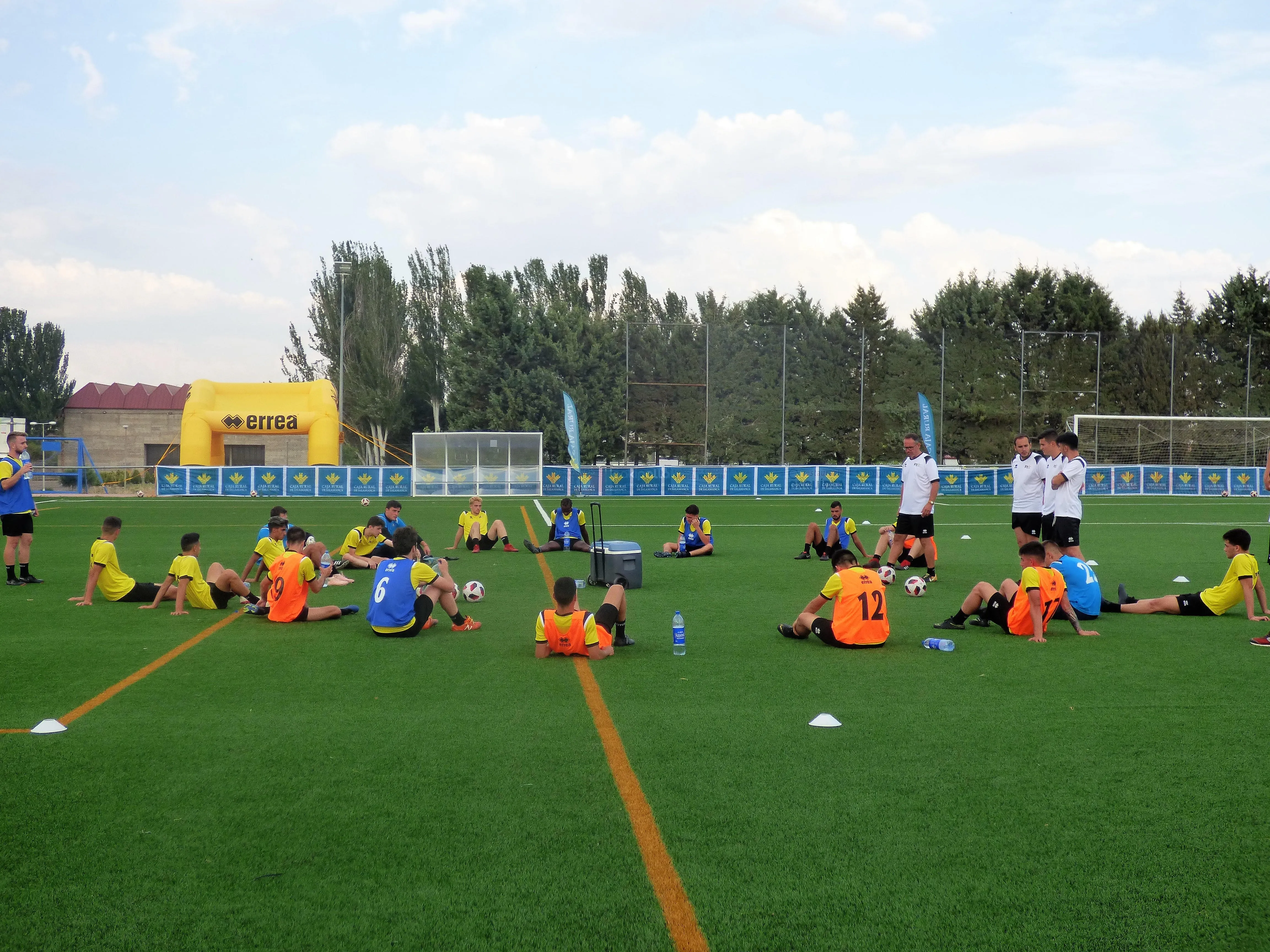 Hoy, los chicos tuvieron su primera sesión de entrenamiento a las 10:30 horas de la mañana, en la cual cerraron el primer bloque de entrenamientos diseñado por el staff técnico de Gorka Etxeberría. Una vez concluido el entrenamiento, fue el propio Gorka Etxeberría el que impartió la charla en el círculo central del campo frente a las miradas del público allí presente. Con la idea de no cargar a los jugadores y permitirles que se relajen, esta tarde no hubo entrenamiento, si no que tuvieron una jornada de ocio en las piscinas del Helmántico donde pudieron comer, descansar y disfrutar de una tarde rodeados de sus compañeros. Tras el entrenamiento, los jugadores pudieron conocer y saludar al jugador de Unionistas de Salamanca Javi Navas, que se pasó a animar a los chicos a seguir esforzándose hasta el último momento.