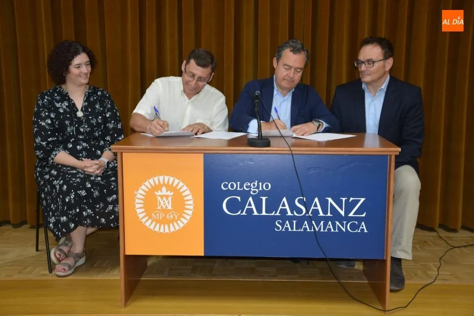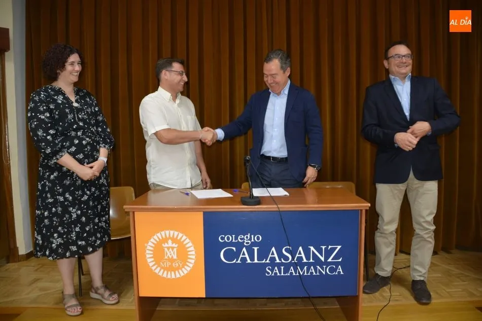 El acuerdo ha sido firmado este jueves en el centro salmantino, en un acto en que han participado el titular del colegio Calasanz, Eloy Marqués; la directora del colegio Calasanz, María Luz Santos; y representantes de Indra: Santiago Huertas Chacón, Mª del Carmen González y Manuel Martín Portillo.