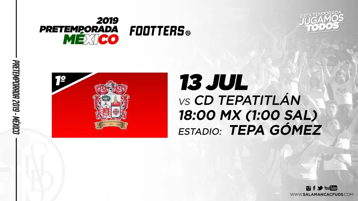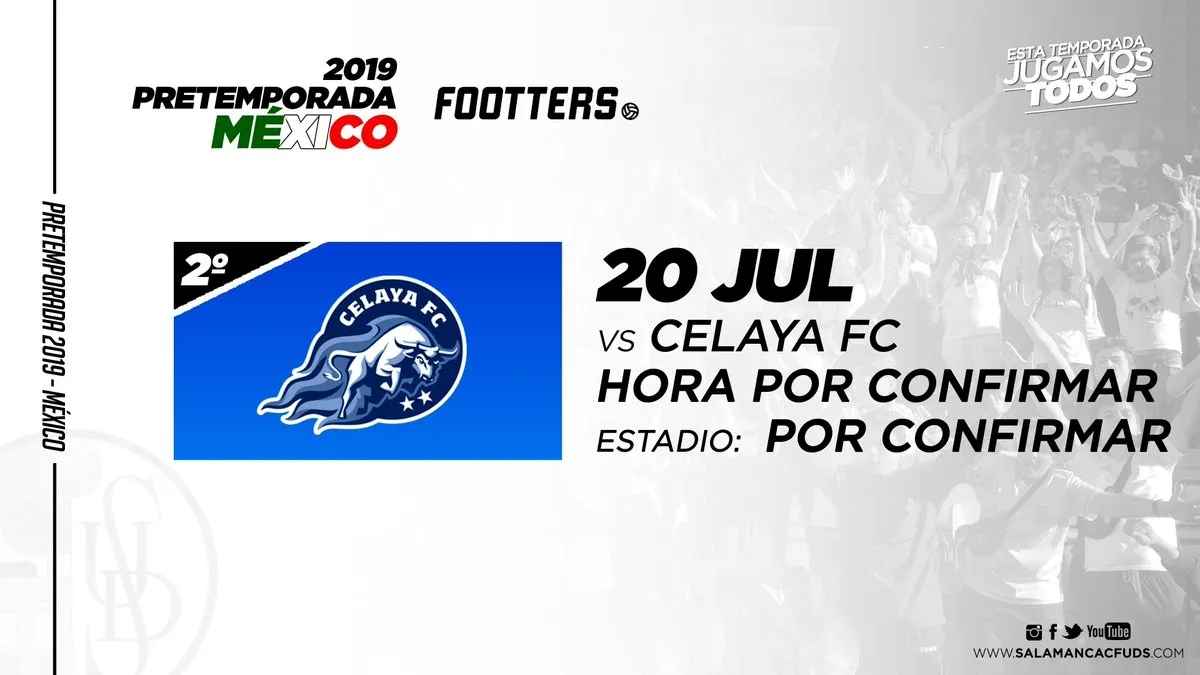 El Salamanca UDS ha anunciado tres nuevos encuentros amistosos para su pretemporada en México. El conjunto del Helmántico se medirá al Celaya el 20 de julio en horario aún por confirmar, al Tepatitlán el 13 de julio a las 18:00 horas (1:00 hora española del 14 de julio) y al Deportivo Cafessa el 24 de julio en un horario y lugar no confirmado aún. Estos tres encuentros amistosos anunciados por el club se une al ya conocido que disputarán el 27 de julio frente al Reboceros de la Piedad.
