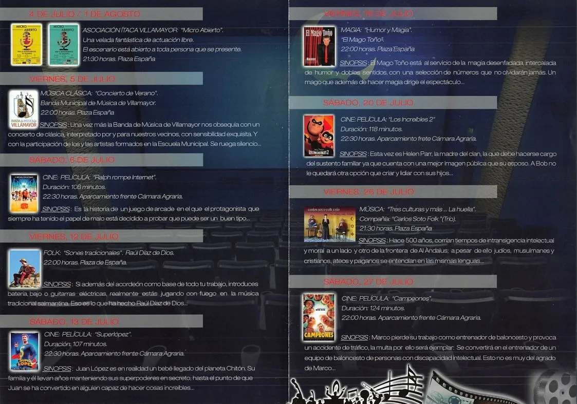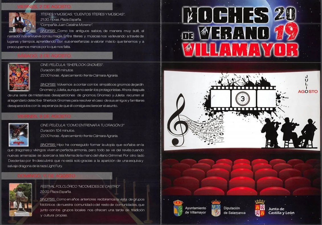 El programa se inicia esta noche con el concierto de música clásica que ofrecerá la Banda Municipal de Música de Villamayor en la Plaza de España a partir de las 22.00 horas. Además, el cine será el protagonista de la noche de mañána sábado, con la proyección de la película ?Ralph rompe Internet? a las 22.30 horas en el aparcamiento rente a la la Cámara Agraria.