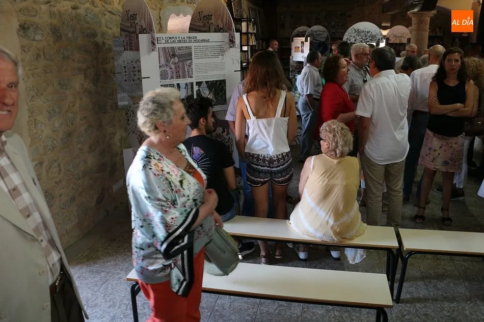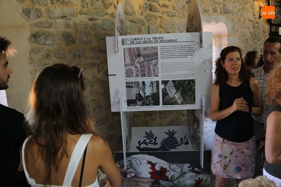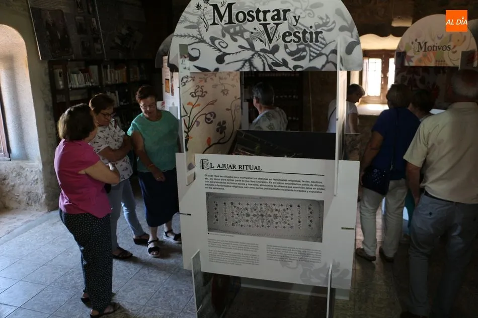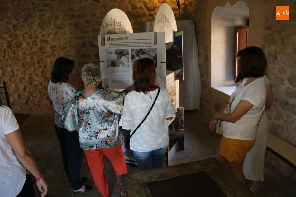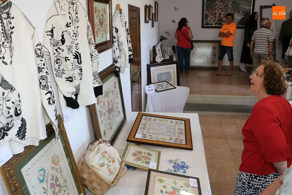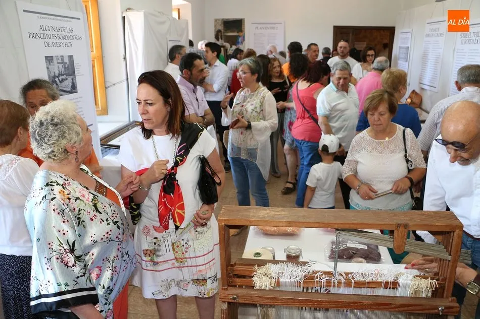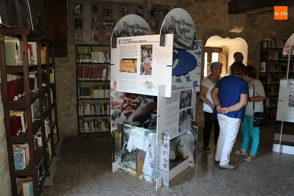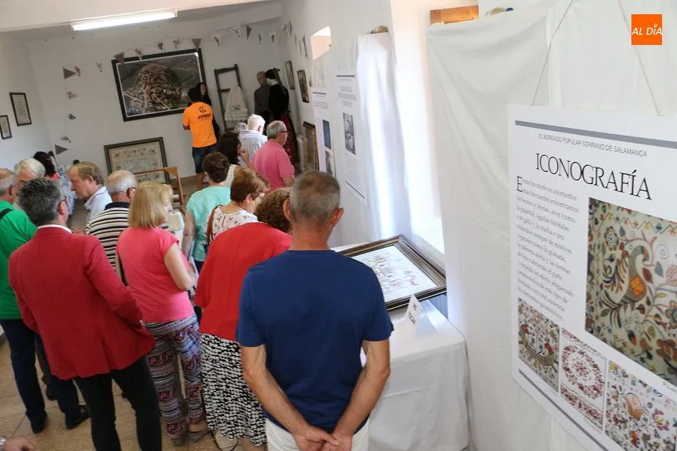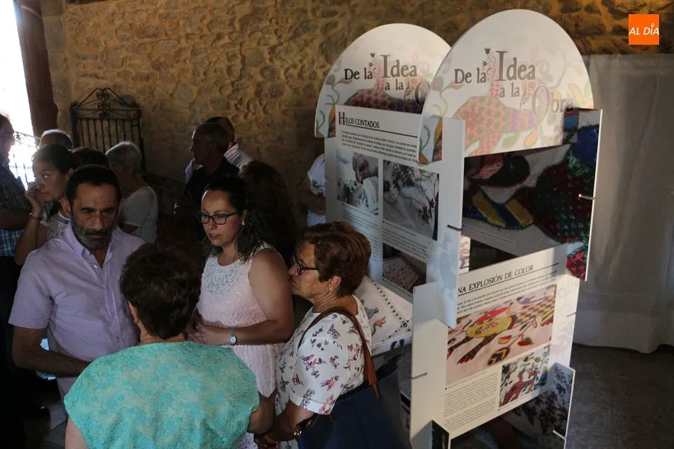 No faltaron tampoco los verdaderos protagonistas de la jornada, los miembros de Red Arrayán, organización que promueve el Proyecto Entre2 de Salvaguarda del Bordado Serrano, así como la presencia de numerosas bordadoras de la localidad. La muestra se ha dividido en dos partes, la primera de ellas con paneles y vídeos explicativos que se han situado en la planta baja. En la primera planta se han ubicado los trabajos realizados por las artesanas del bordado.