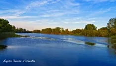 El azul de las aguas y el azul de los cielos se replican aquí, en este transcurso del Tormes por Almenara. Las bodas del azul, celebradas en este espacio con lentitud y suavidad, como si se nos invitara a una serenidad de ánimo, como estado para existir en armonía con todo, con este cosmos equilibrado, en el que los cielos se dejan apresar en el espejo de las aguas, para que podamos beber esa copa universal de la belleza con lentitud y aprecio.
