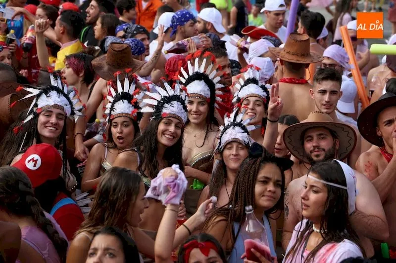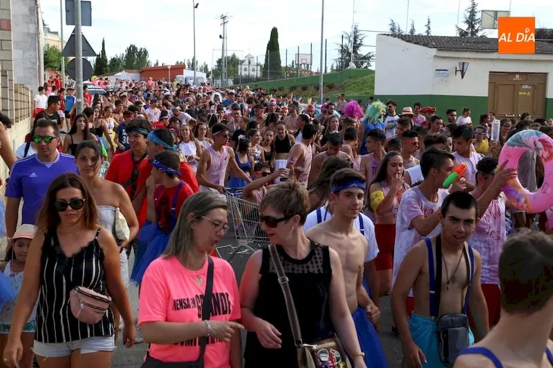 Los vecinos de la localidad optaron muchos de ellos por disfrazarse para realizar el tradicional desfile de peñas en el inicio de las fiestas