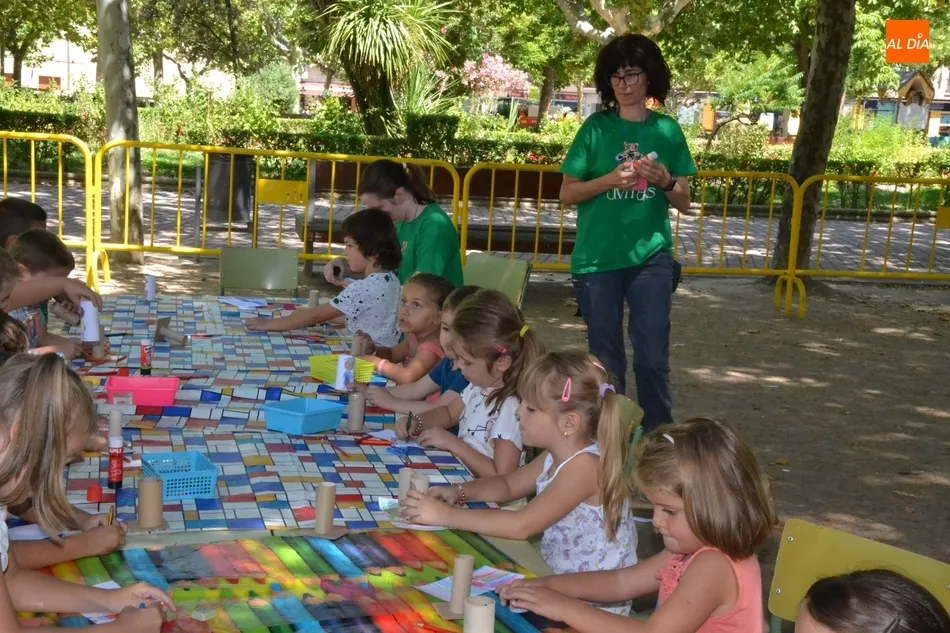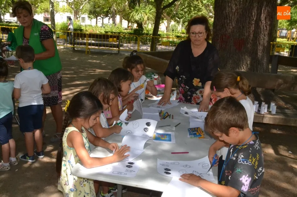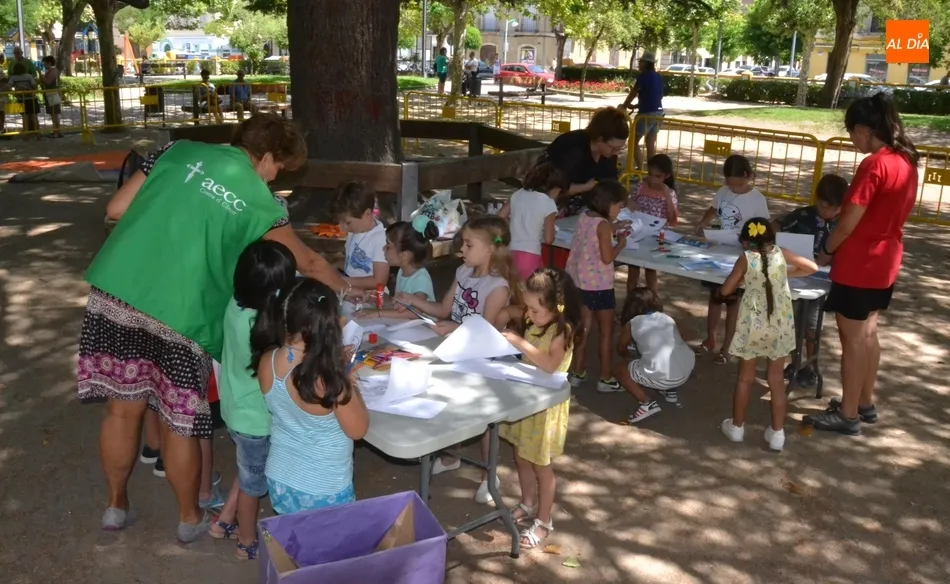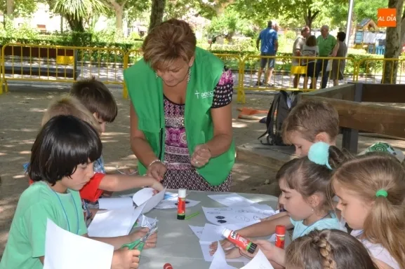 Como cada verano, el Parque de La Glorieta de Ciudad Rodrigo ha recibido la visita de integrantes de la Asociación Española contra el Cáncer (AECC), que han compartido las mañanas del miércoles y el jueves con los chavales que están asistiendo al programa de animación infantil que allí se desarrolla, que este año se denomina Una Glorieta Emocionante.
