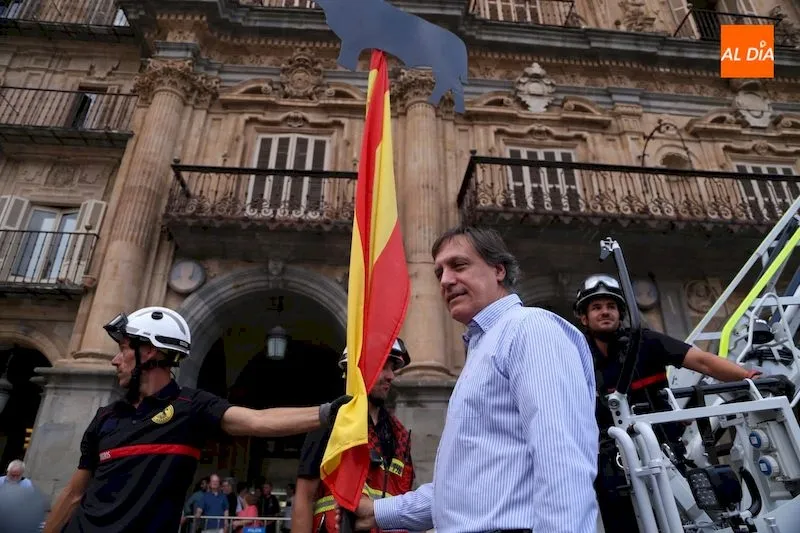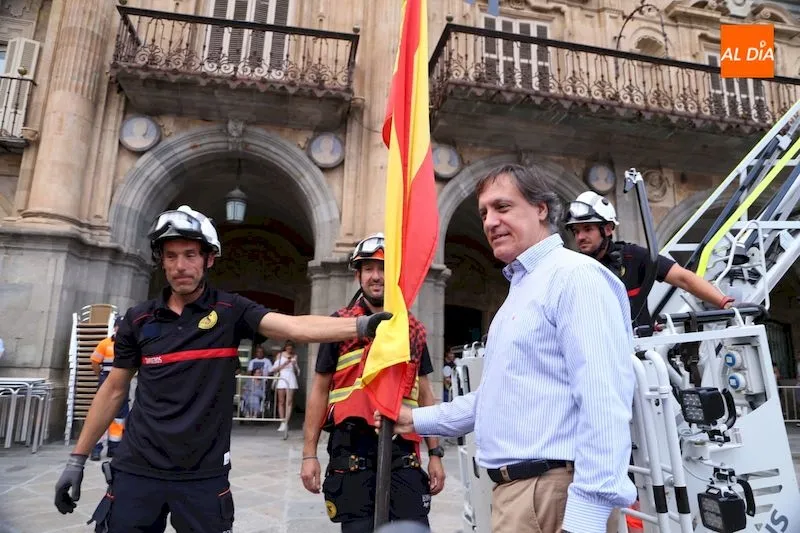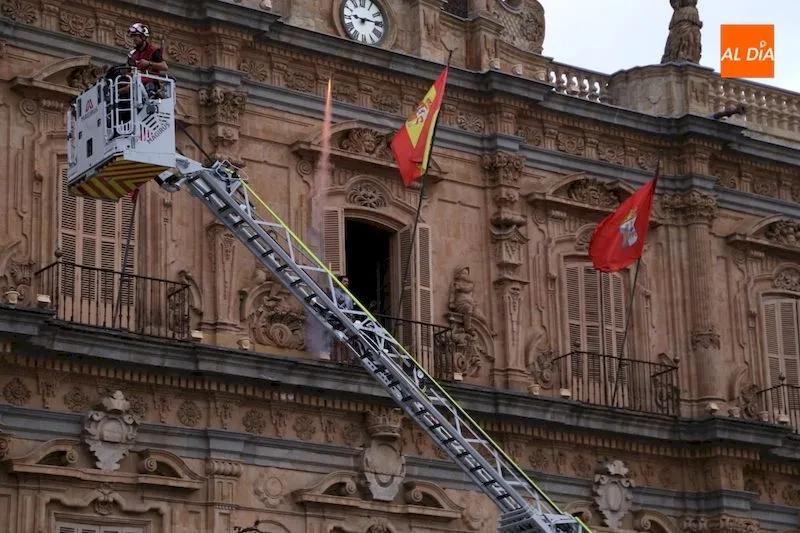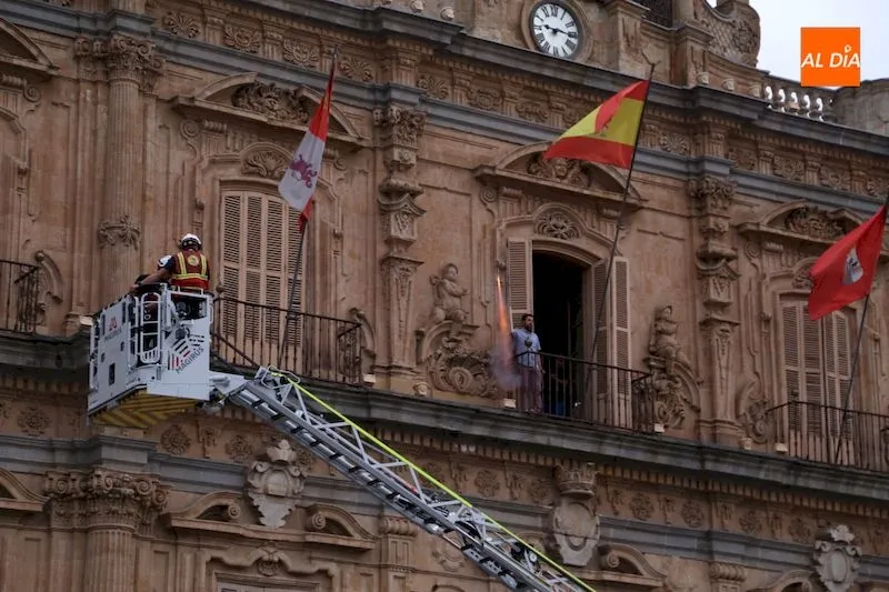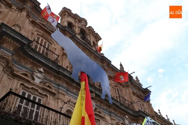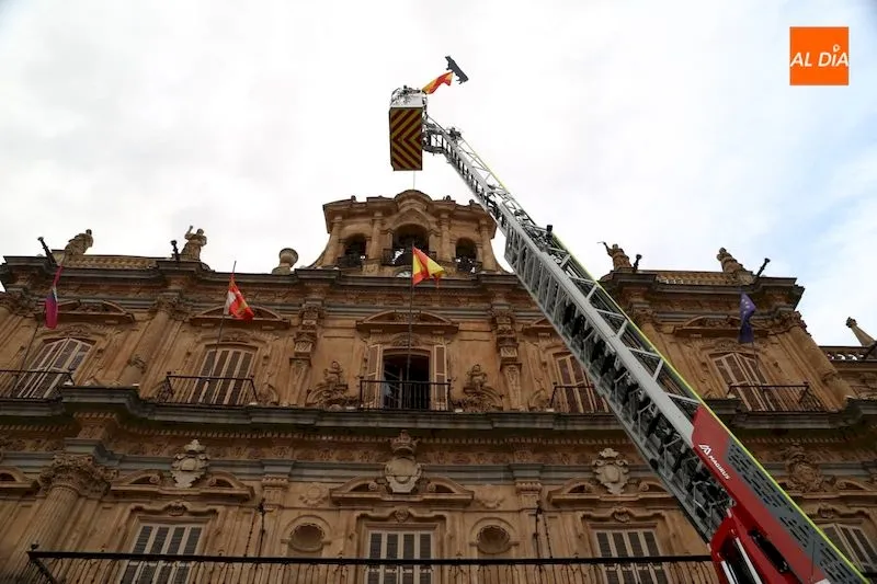 La Mariseca fue colocada esta noche por los bomberos municipales en la espadaña del Ayuntamiento, donde permanecerá hasta el próximo 15 de septiembre. La Mariseca es un símbolo compuesto por la bandera española y la silueta negra de un toro que anuncia la celebración de las Ferias y Fiestas de Salamanca, en honor a Santa María de la Vega.