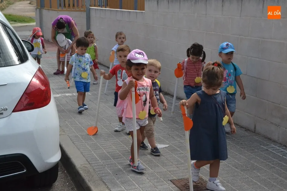 Como cada 25 de julio, Festividad de Santiago Apóstol, la Escuela Infantil José Manuel Hidalgo de Ciudad Rodrigo realizó en la mañana del jueves su particular peregrinación anual hasta Santiago de Compostela. En este sentido, a media mañana los alumnos más mayores del centro (algunos de los cuales ya tienen que iniciar la etapa de Educación Infantil en los colegios en septiembre) se pusieron sus mochilas y sus gorras, se colgaron la tradicional concha al cuello, y cogieron las varas de peregrino para llevar a cabo una ruta por el exterior de la Escuela.