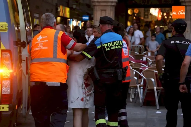 El proyectil no ascendió por motivos que se desconocen y explotó en medio de la Plaza Mayor de Salamanca alcanzando a la mujer, que rápidamente fue atendida por miembros de la Policía Local. Los servicios de emergencia acudieron rápidamente al lugar para valorar el estado de la herida.