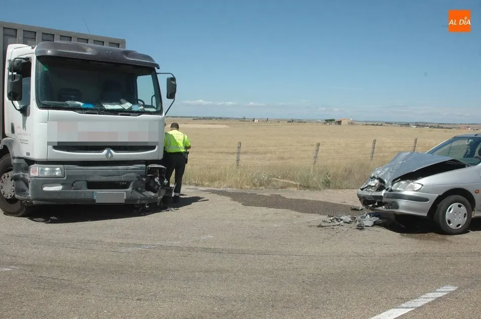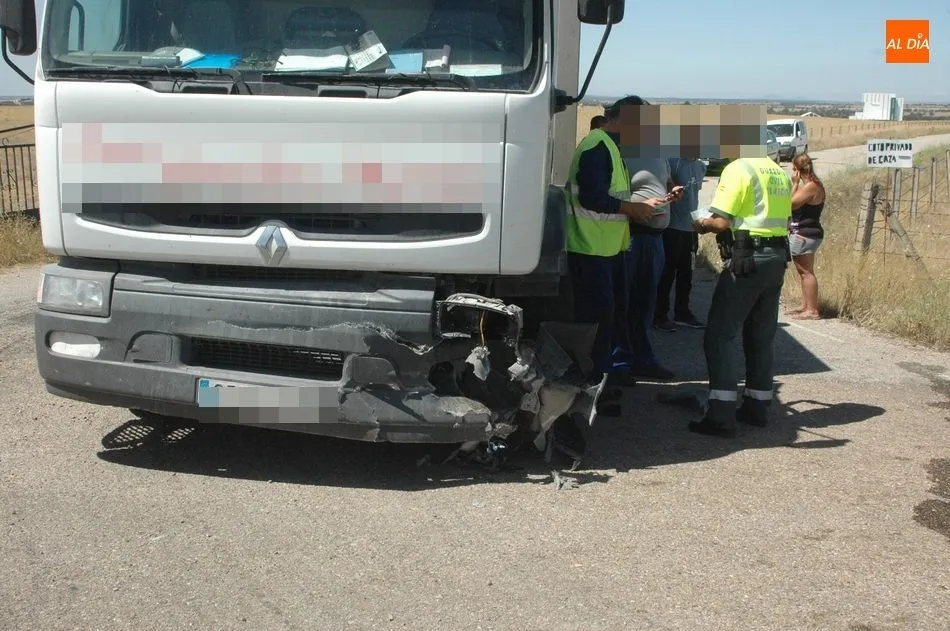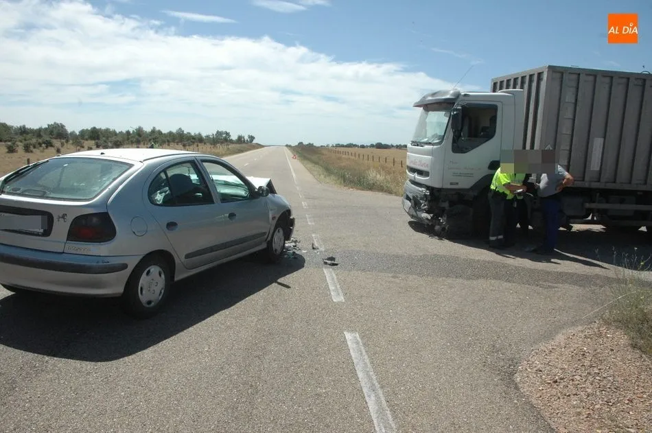 Una joven ha resultado herida en un accidente de tráfico que se producía este mediodía en la carretera que comunica Vitigudino con La Fuente de San Esteban. Un camión y un turismo colisionaban a la altura del kilometro 28.50, concretamente en el cruce de esta vía con un camino de acceso al matadero de Vitigudino. La copiloto del turismo, una mujer joven, ha sido trasladada a un centro hospitalario de Salamnaca, al parecer, por molestias en el pecho. Tanto los conductores del coche como del camión están bien.