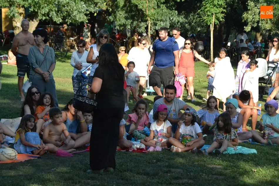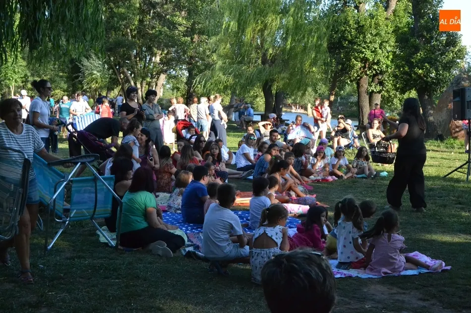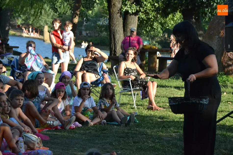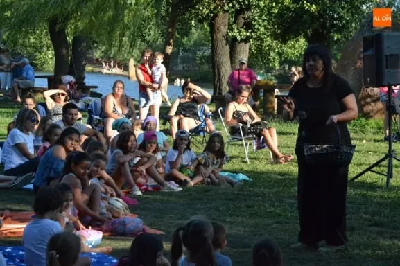 La isla de El Picón acogió en el tramo final de la tarde del viernes la quinta y última de las Veladas a orillas del Águeda promovidas por el Ayuntamiento de Ciudad Rodrigo. Esta cita de despedida fue totalmente diferente a las demás: si en todos los días anteriores se disfrutó de conciertos, en esta ocasión fue turno para un cuentacuentos.