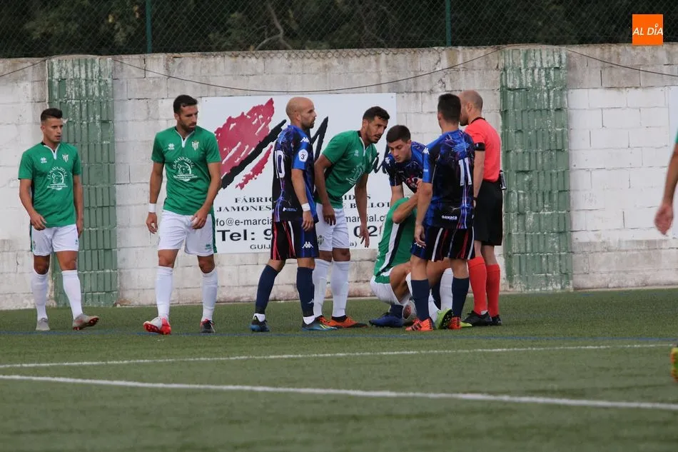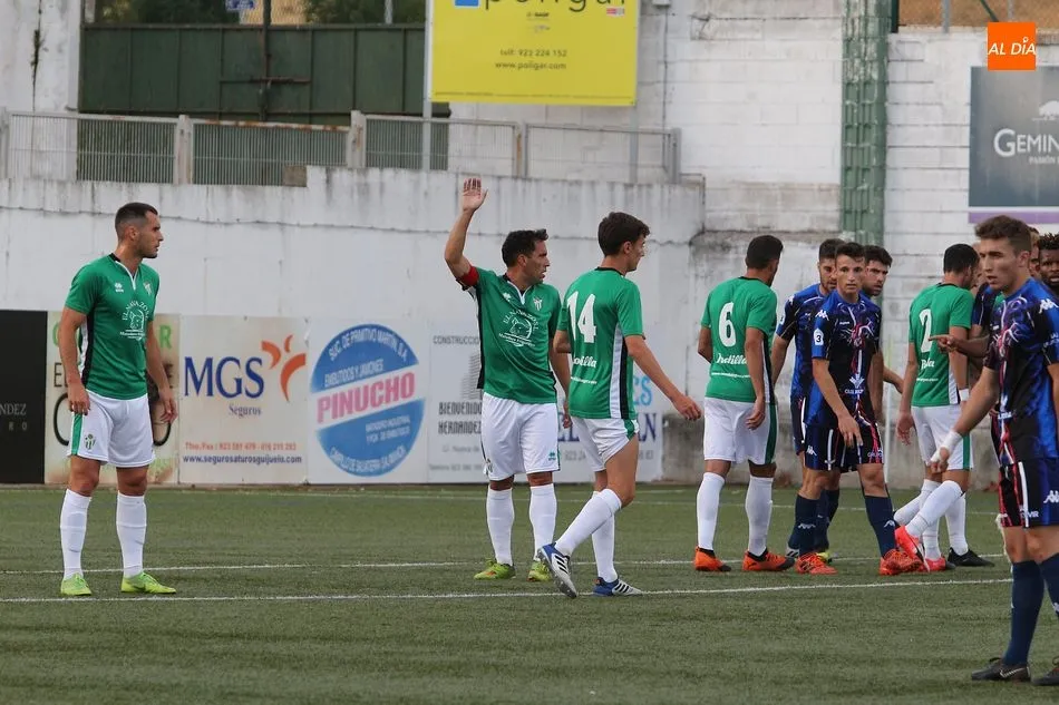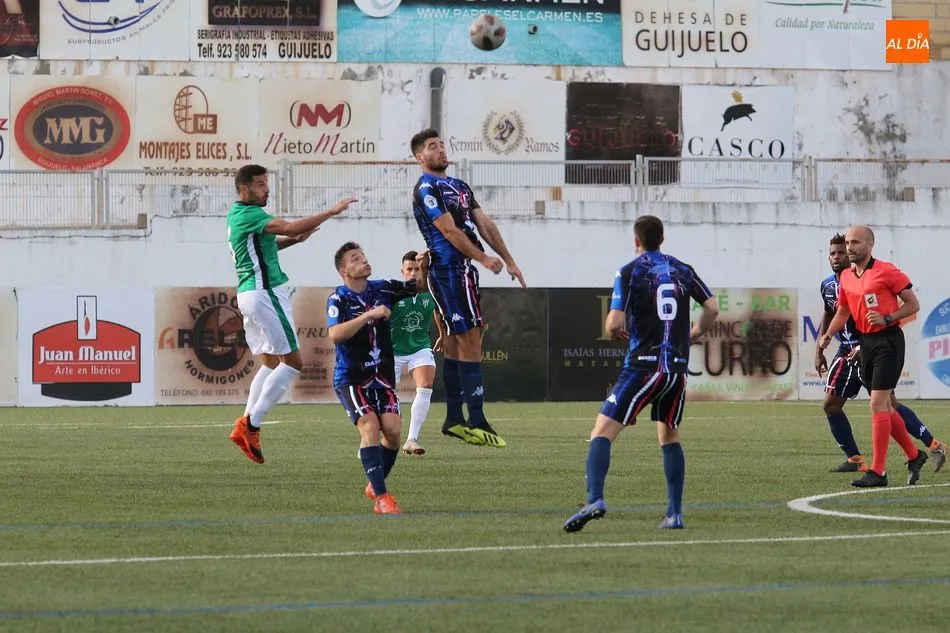 En el terreno de juego, segunda prueba para el equipo de Ángel Sánchez, y esta vez con un Tercera más correoso y serio. Desde un primer momento se vio que era un rival complicado y que plantaba cara al recién formado Guijuelo. Ambos equipos protagonizaron un duelo en el centro del campo muy tenso durante la primera mitad.
