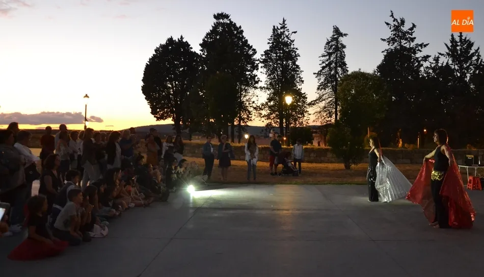 La pista de los antiguos Jardines Bolonia de Ciudad Rodrigo, en el Paseo Fernando Arrabal, acogió en la jornada del sábado -coincidiendo con el espectacular anochecer que hubo- una sesión de baile, en forma de exhibición de danza oriental a cargo del Centro de Pilates y Danza Tere. En la sesión tomaron parte varias mujeres, tanto adultas como niñas, que ofrecieron varios números que fueron contemplados por un nutrido grupo de personas, entre ellos numerosos familiares de las protagonistas.