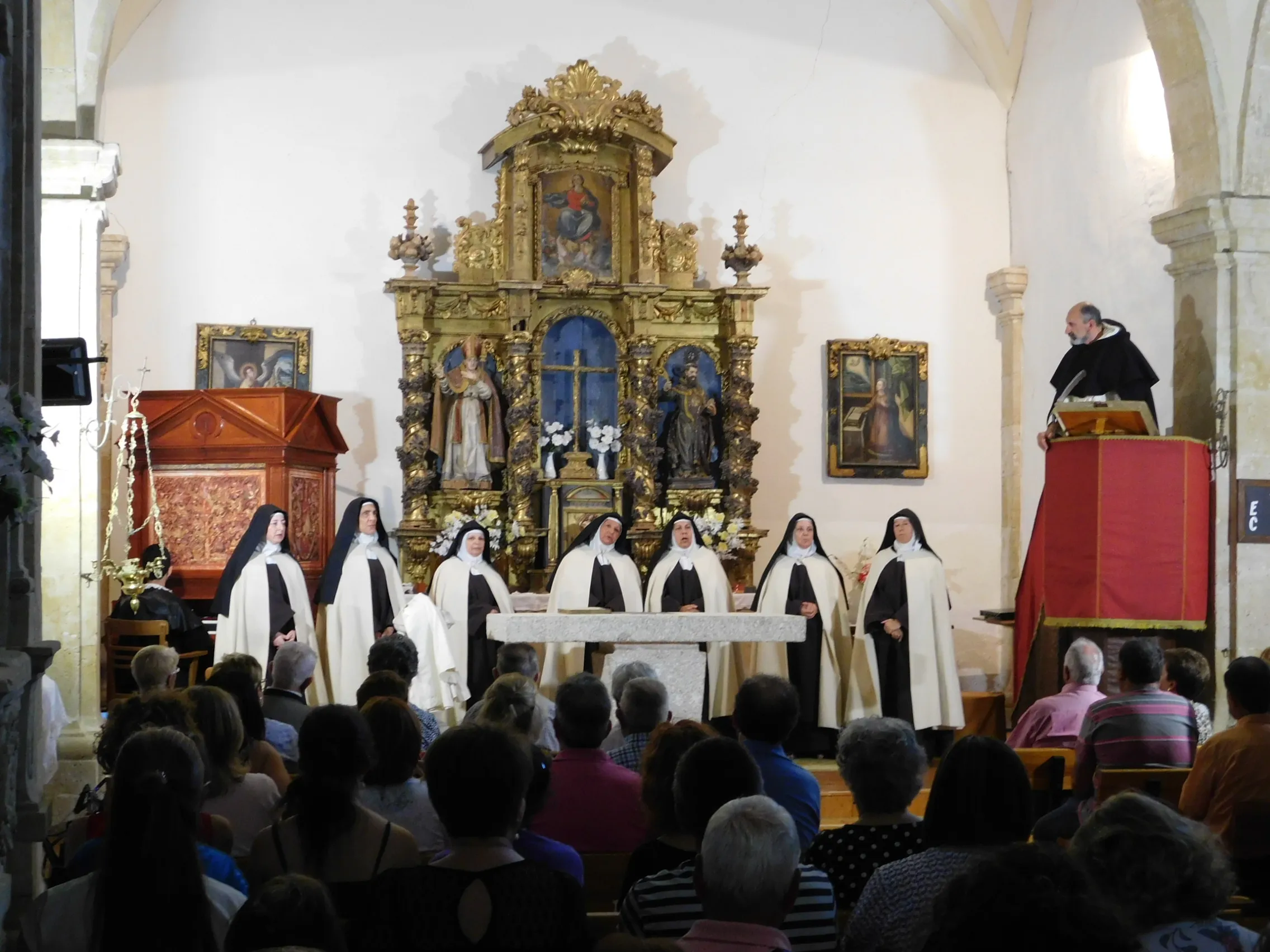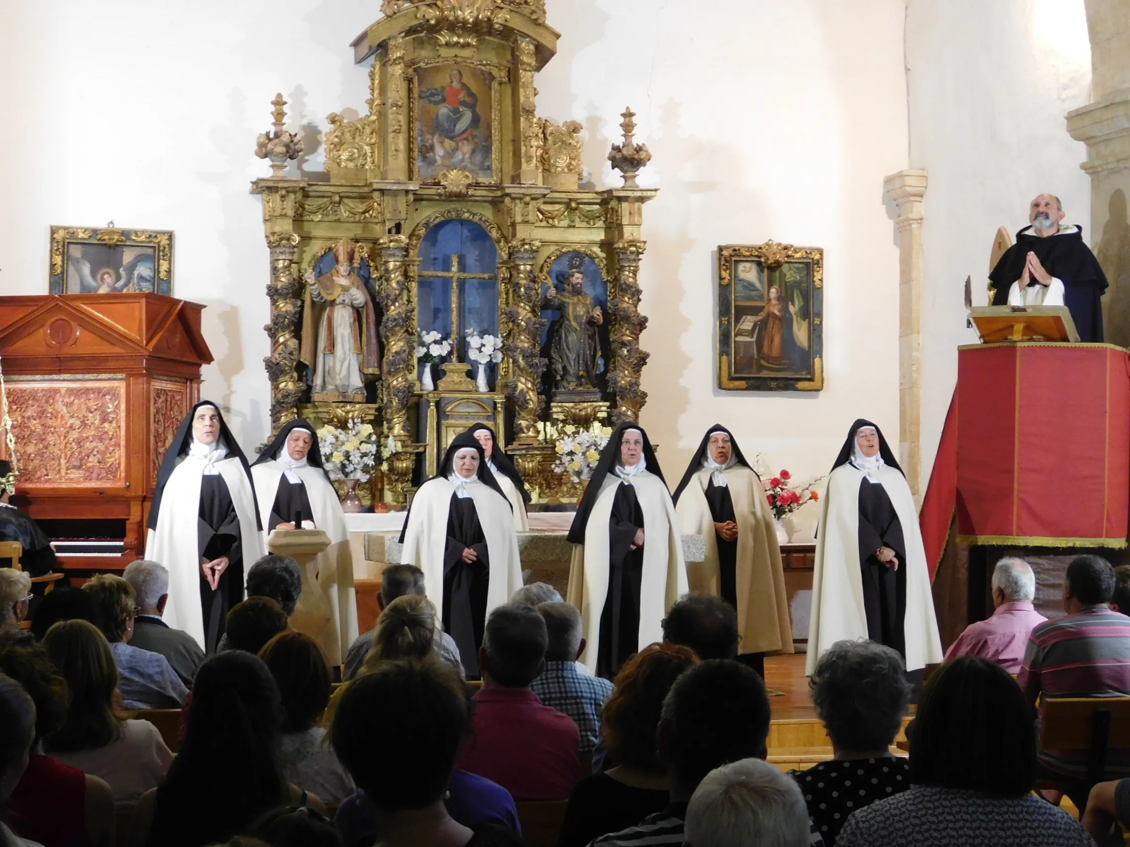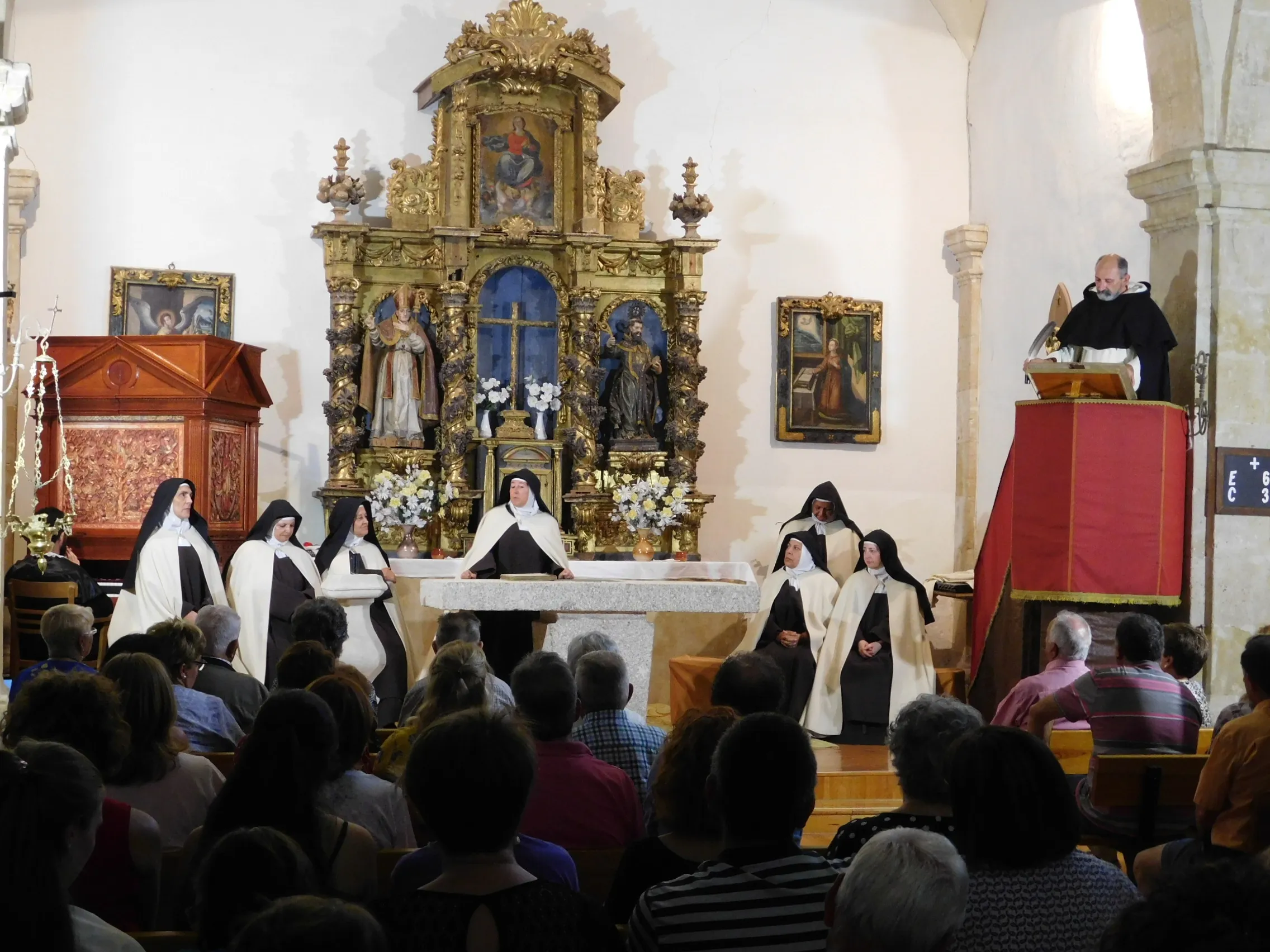 El auténtico a la vez que valioso retablo del XVI, que preside el Altar Mayor de la iglesia de la Exaltación de la Cruz de Parada de Arriba acompaña en su cronología a la vida que se nos cuenta en escena. Hasta él han llegado un grupo de monjas bien reconocibles en sus hábitos de estameña de la época que viven, y que llegan hasta el convento de Alba de Tormes para acompañar a su madre en su hora final. Antes, sorprendidas por la voz inquisitorial que les llega desde un púlpito, reclamando la presencia de la moribunda, deben blindarse ante un padre dominico que demanda sus respuestas, que puedan incriminar a la mujer que les ha enseñado a ser libres. No hay nada que defender. Diálogos frescos, irónicos, valientes, acompañados por la bella obra lírica de la madre, sus cartas, su vida fundacional dedicada a ellas, acaban con un cuadro que nada bueno augura en sus comienzos. La libertad y entrega de una mujer libre y entregada a todos y por todos, arranca al cabo de una hora la ovación de unos espectadores, que vuelven a ser conscientes de lo vivido en su parroquia de Parada de Arriba, que se había convertido para ellos en el convento albense, donde Teresa vivió sus últimos momentos. Despiden así, una vez más a unas carmelitas que vuelven a su túnel del tiempo, universal gracias a su maestra, seguros de que irán a reposar sus cansados pies en la cercana fuente de Piedra, que aunque construida en el XIX, se hará también intemporal para ellas como Teresa. La música genial de un órgano tocado por las manos geniales de un músico renacentista, queda flotando hasta la próxima vez.