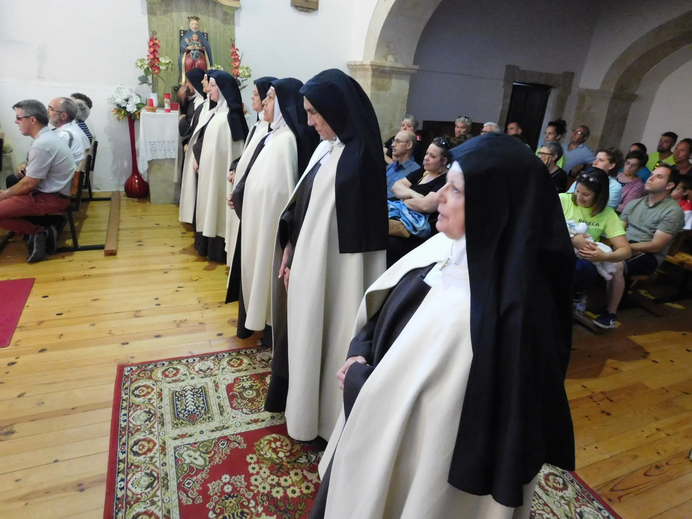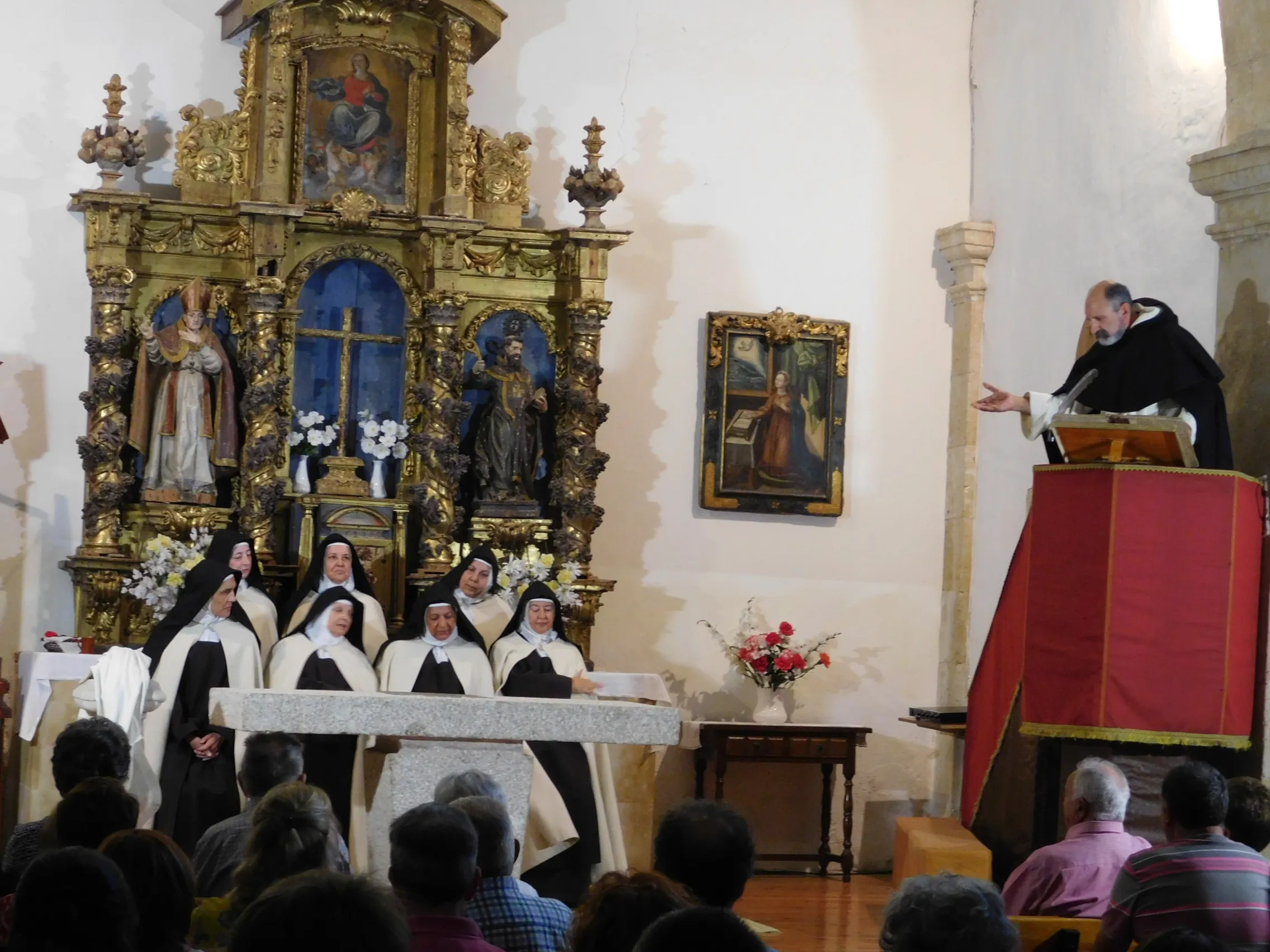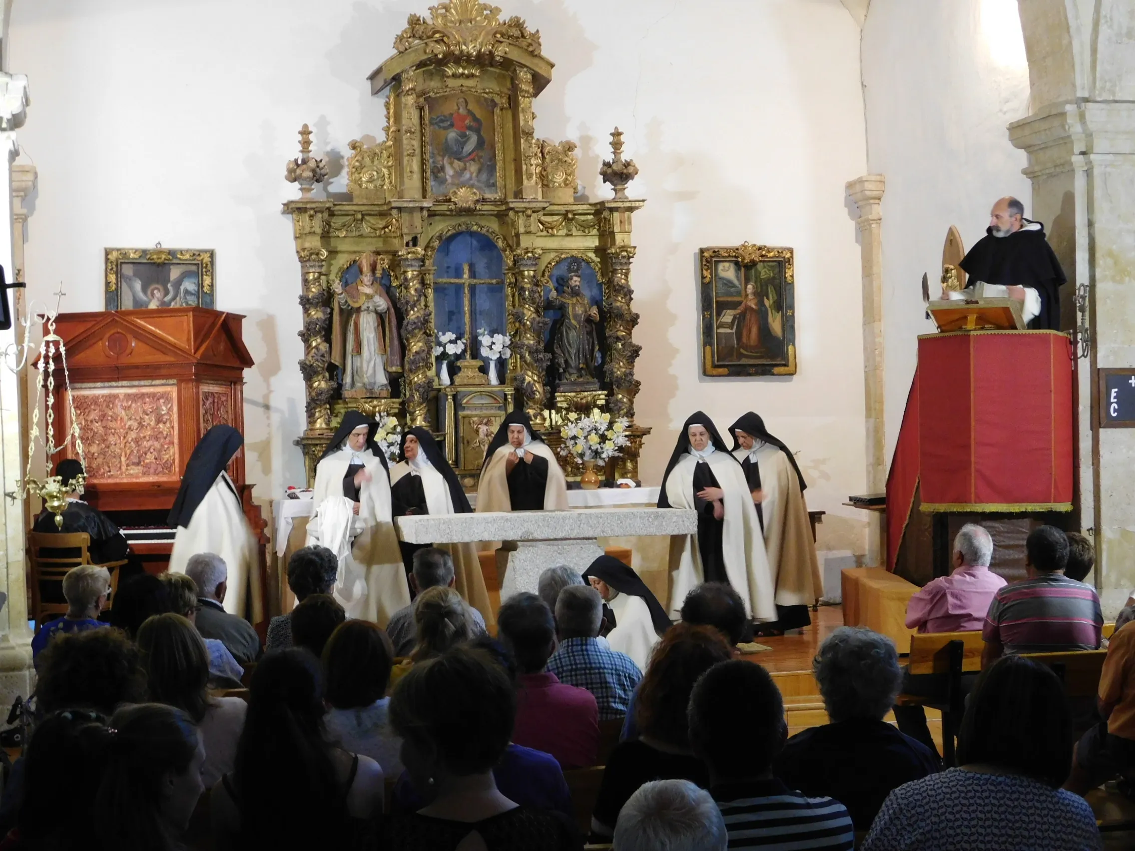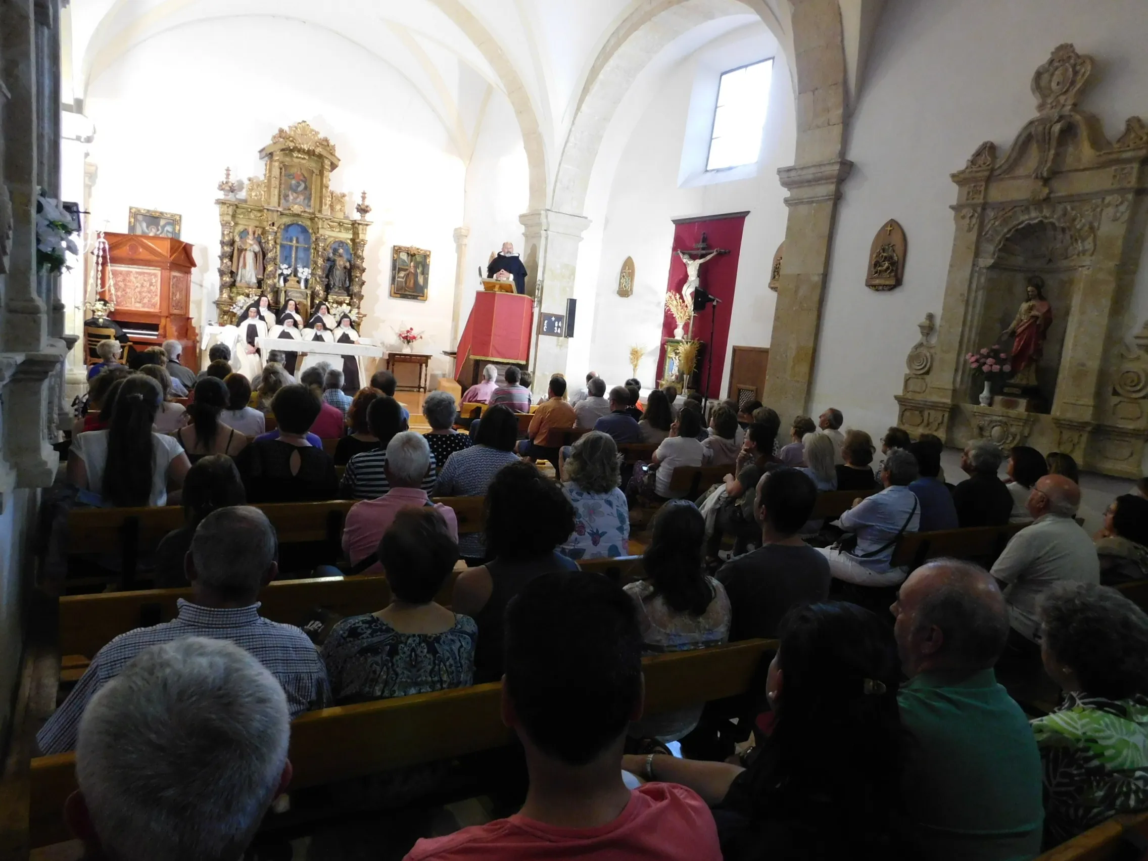 El auténtico a la vez que valioso retablo del XVI, que preside el Altar Mayor de la iglesia de la Exaltación de la Cruz de Parada de Arriba acompaña en su cronología a la vida que se nos cuenta en escena. Hasta él han llegado un grupo de monjas bien reconocibles en sus hábitos de estameña de la época que viven, y que llegan hasta el convento de Alba de Tormes para acompañar a su madre en su hora final. Antes, sorprendidas por la voz inquisitorial que les llega desde un púlpito, reclamando la presencia de la moribunda, deben blindarse ante un padre dominico que demanda sus respuestas, que puedan incriminar a la mujer que les ha enseñado a ser libres. No hay nada que defender. Diálogos frescos, irónicos, valientes, acompañados por la bella obra lírica de la madre, sus cartas, su vida fundacional dedicada a ellas, acaban con un cuadro que nada bueno augura en sus comienzos. La libertad y entrega de una mujer libre y entregada a todos y por todos, arranca al cabo de una hora la ovación de unos espectadores, que vuelven a ser conscientes de lo vivido en su parroquia de Parada de Arriba, que se había convertido para ellos en el convento albense, donde Teresa vivió sus últimos momentos. Despiden así, una vez más a unas carmelitas que vuelven a su túnel del tiempo, universal gracias a su maestra, seguros de que irán a reposar sus cansados pies en la cercana fuente de Piedra, que aunque construida en el XIX, se hará también intemporal para ellas como Teresa. La música genial de un órgano tocado por las manos geniales de un músico renacentista, queda flotando hasta la próxima vez.