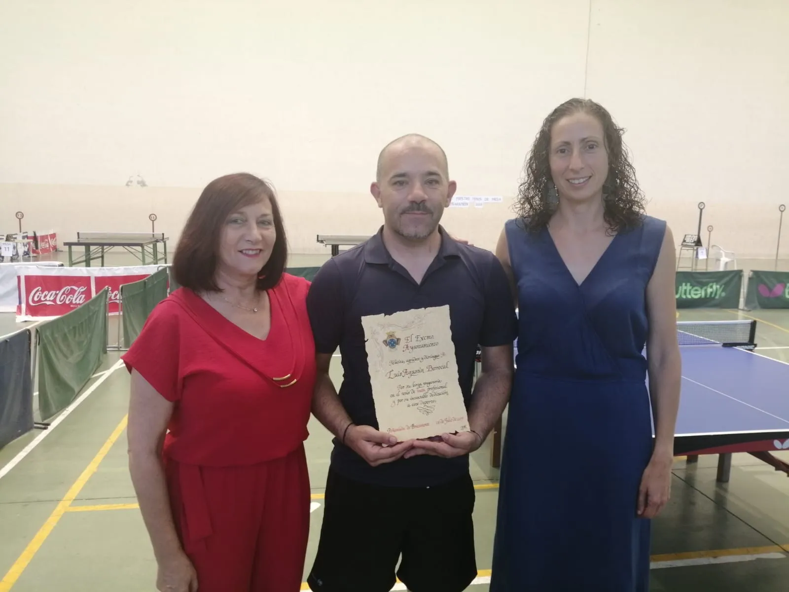 La jornada deportiva y el tenis de mesa local también ofrecían un sentido homenaje hoy a Luis Berrocal, gran amante e impulsor de esta disciplina en la ciudad, quien se retira de este deporte a nivel profesional.
