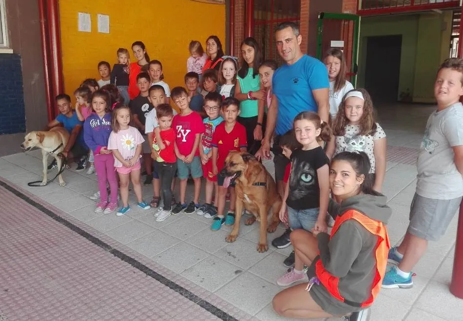 Para arrancar esta semana de despedida, se contó en el Colegio Miróbriga de Ciudad Rodrigo con la presencia del Centro Canino Residencial La Manada, cuyo gerente, Miguel Zamarreño (quién estuvo acompañado por Fernando Hernández y Pablo Rodríguez), explicó a los chavales cómo se actúa con los perros de rescate, remarcando que no son ningún juguete y que pueden ser claves para encontrar desaparecidos.