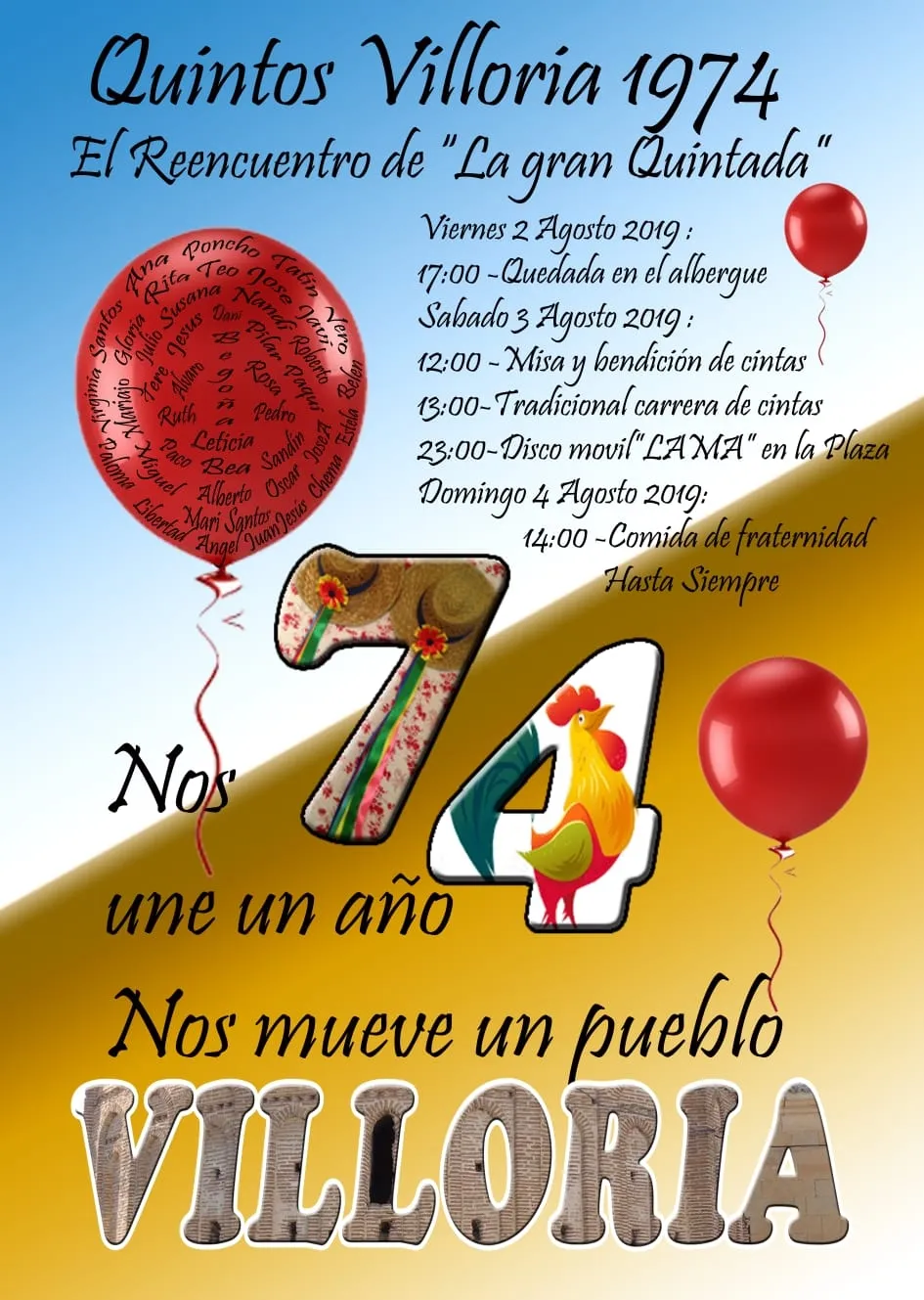 guiente, asistirán a misa, correrán las cintas y, finalmente, bailarán con una discoteca móvil. El reencuentro finalizará el domingo con una comida de fraternidad.