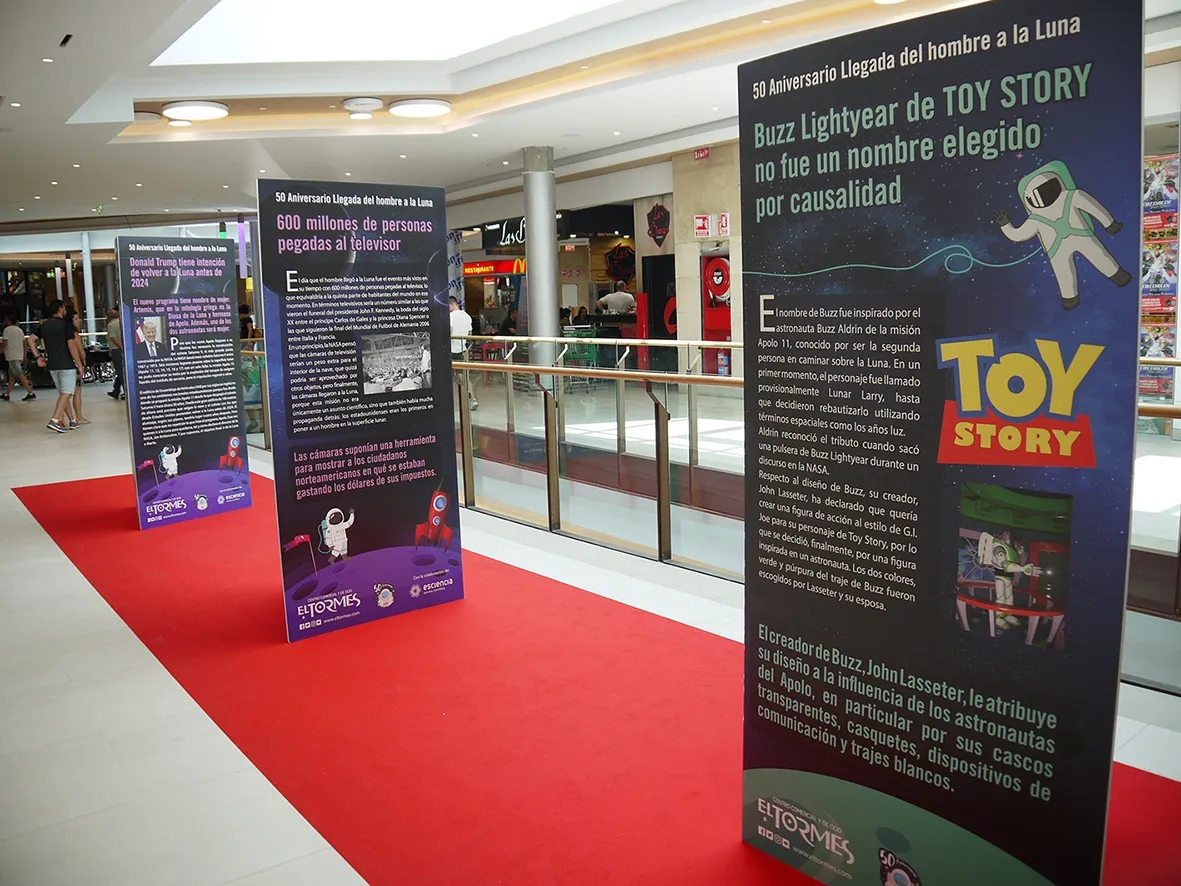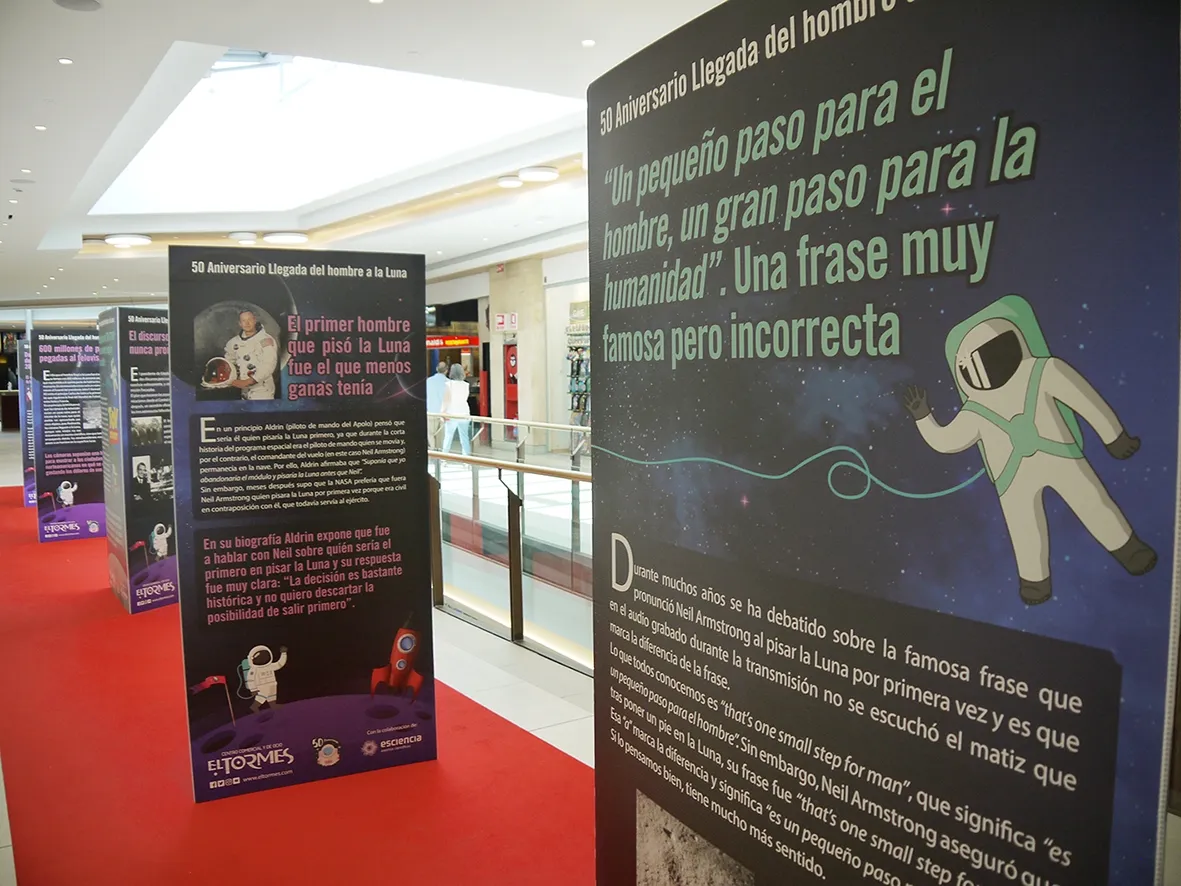 En esta exposición, que se suma a las actividades organizadas por el Centro Comercial en conmemoración de los 50 años de la llegada del hombre a la luna, también se pueden averiguar otras anécdotas como la dificultad que tuvieron Armstrong y Aldrin para clavar la bandera y cómo más de 100 objetos se quedaron en la superficie lunar.