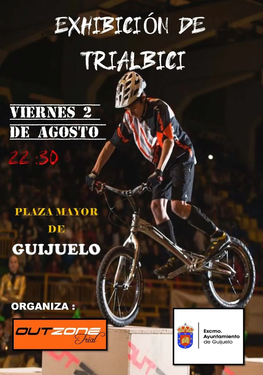 El viernes, en la plaza Mayor, a partir de las diez y media de la noche, tendrá lugar una exhibición de trialbici, que contará con: Dani Heras, Dani Blanco e Iván Izquierdo, además de un ciclista sorpresa, cuyo nombre los organizadores no han querido desvelar. Además, para los que quieran probar los elementos la organización permitirá hacerlo, antes de iniciar la exhibición, por lo que, lo que lo deseen podrán llevarse la bici.