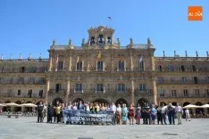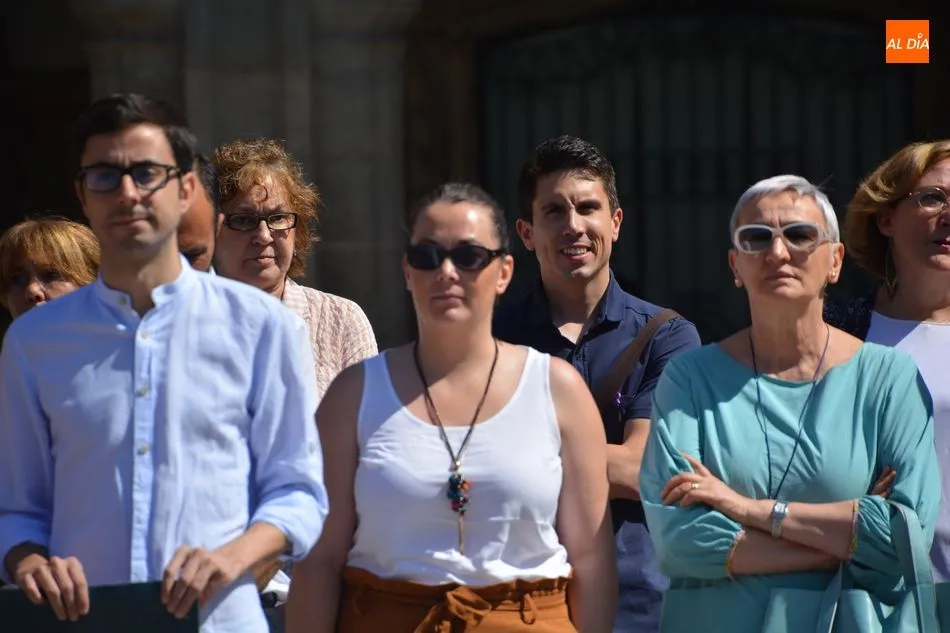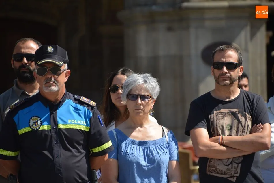 El Ayuntamiento de Salamanca ha realizado esta mañana una concentración y ha guardado un minuto de silencio en la Plaza Mayor en solidaridad y recuerdo por las últimas víctimas de la violencia de género.