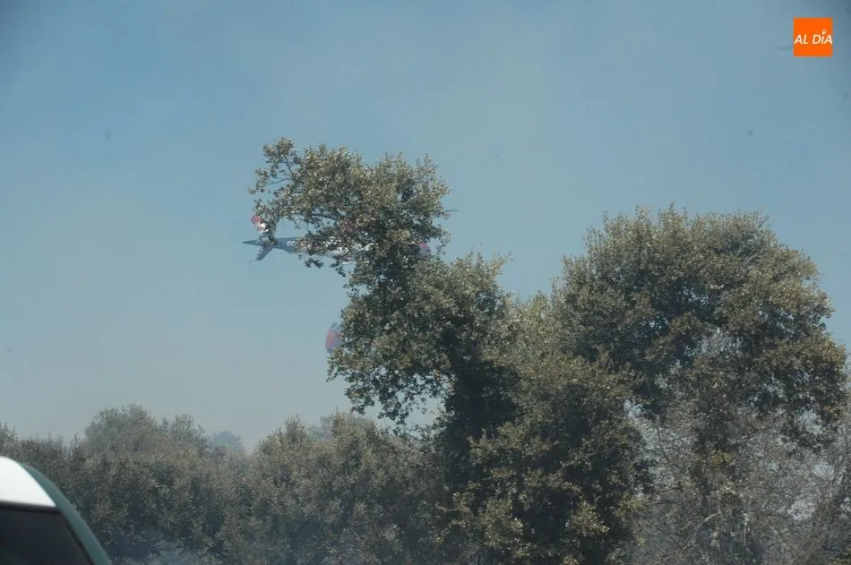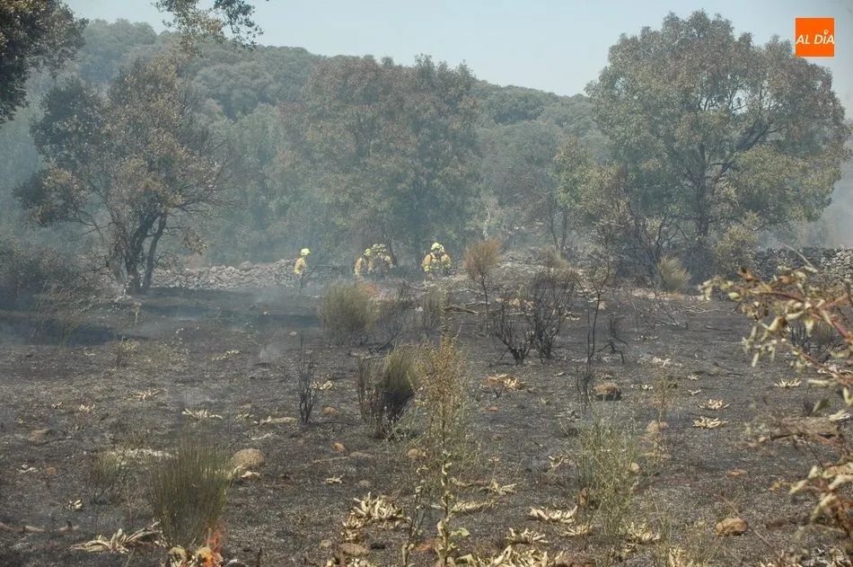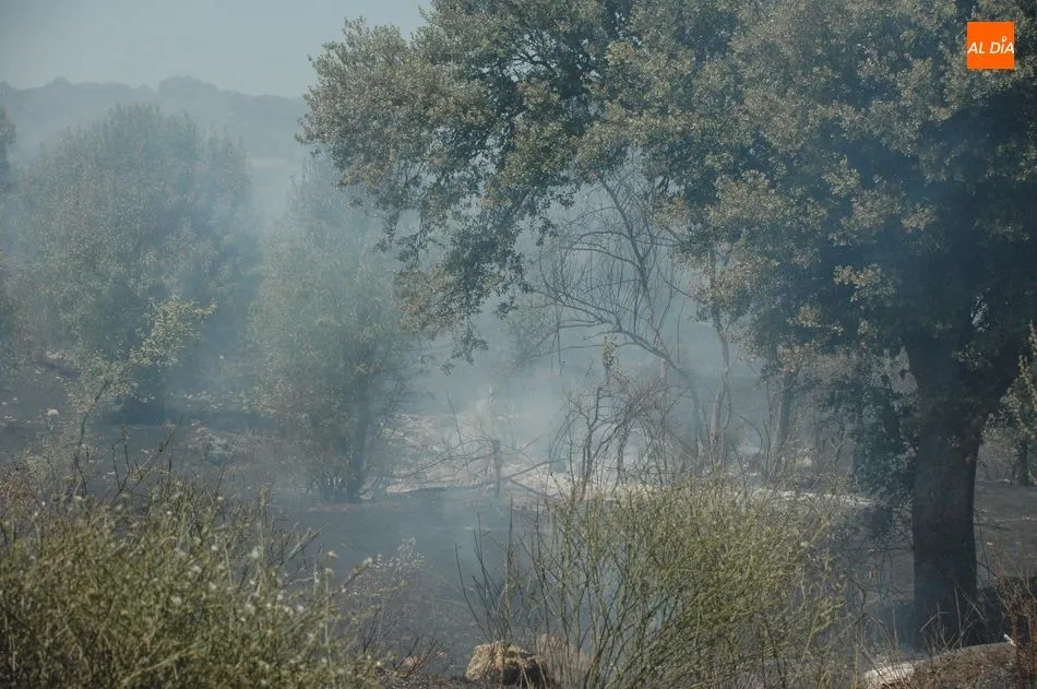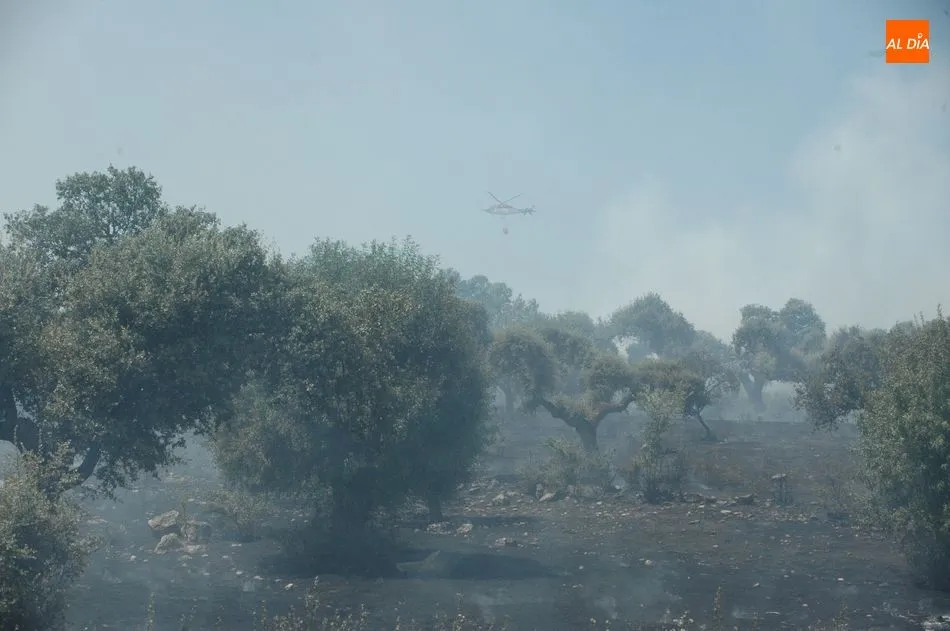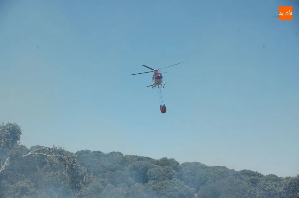 Hasta el lugar se han desplazado los bomberos de Vitigudino, los helicópteros de Guadramiro y el Bodón, y otros medios terrestres