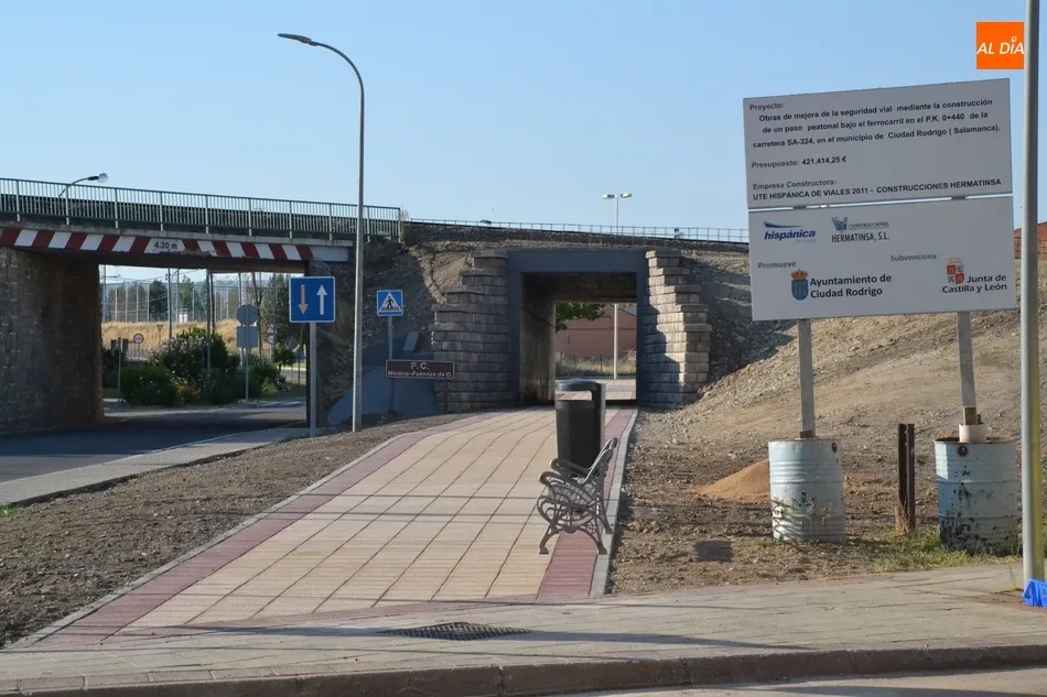El paso ha entrado en servicio en este arranque del mes de agosto, aproximadamente dos años y medio después de que el Ayuntamiento de Ciudad Rodrigo y la Junta llegasen a un acuerdo para la financiación conjunta del paso, que los vecinos venían reivindicando desde hacía décadas ante la inseguridad que causaba el paso que han compartido hasta ahora, durante más de 50 años, peatones y vehículos.