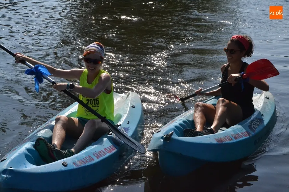 Como es habitual, algunos participantes afrontaron la Combinada al completo, mientras que otros dieron el relevo a sus compañeros de pareja. En total, hubo 44 deportistas que realizaron el trayecto en piragua (de unos 1,5 kilómetros de distancia), algunos de forma individual y otros en piraguas dobles. Este tramo estuvo vigilado por los Bomberos de Ciudad Rodrigo desde una lancha por si se producía algún incidente.
