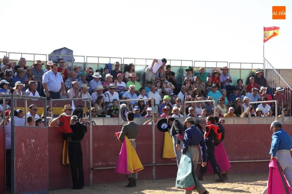 Intervinieron el rejoneador Víctor Herrero (dos orejas), y los matadores David Luguillano (oreja), Salvador Ruano (oreja), Juan Andrés González (aplausos) y Damián Castaño (dos orejas), además del novillero, Juan A. Pérez Pinto (rabo), que se proclamó triunfador de la tarde.