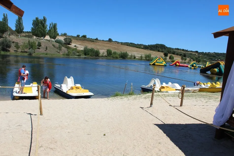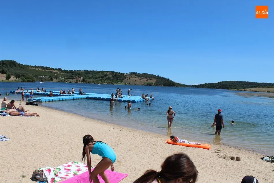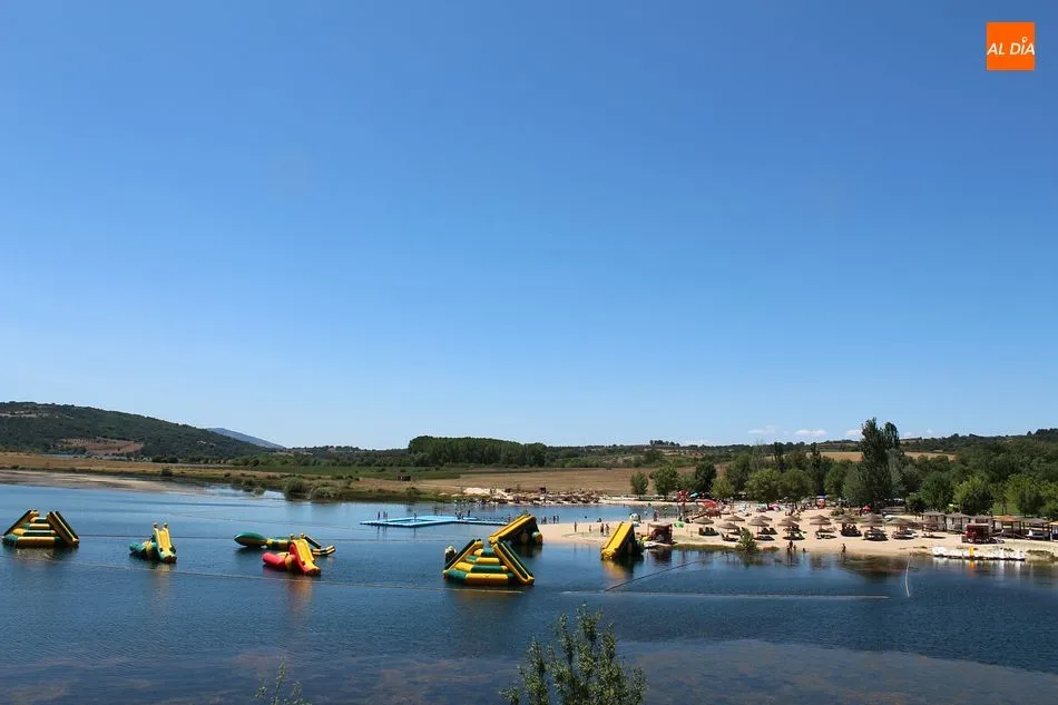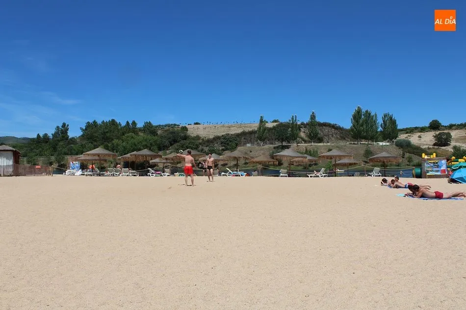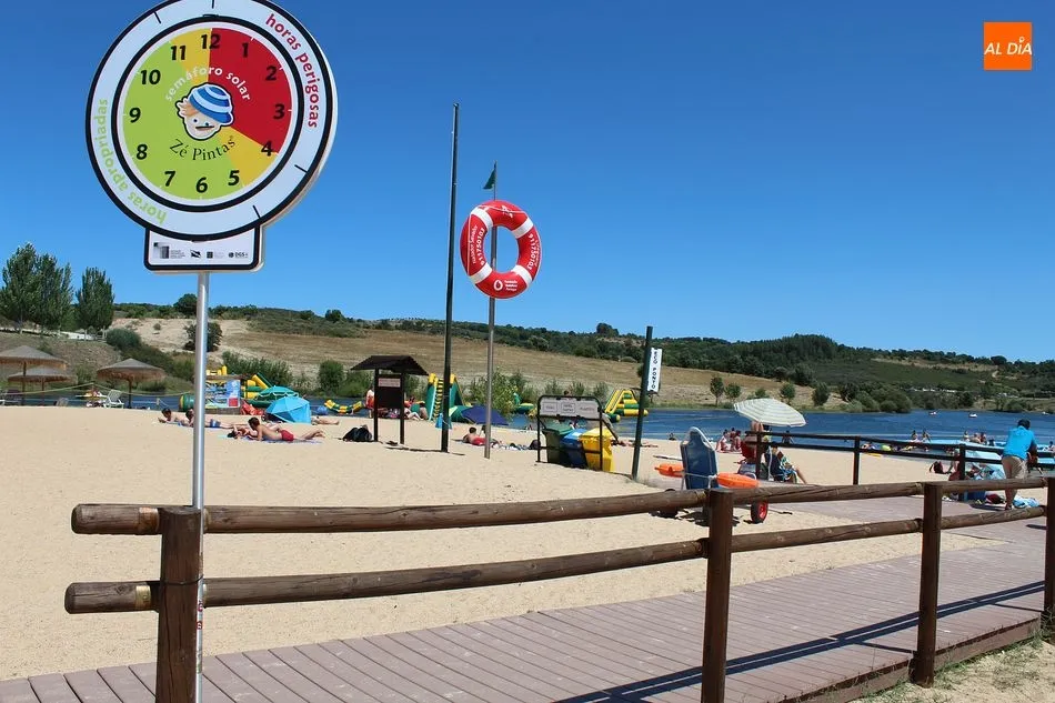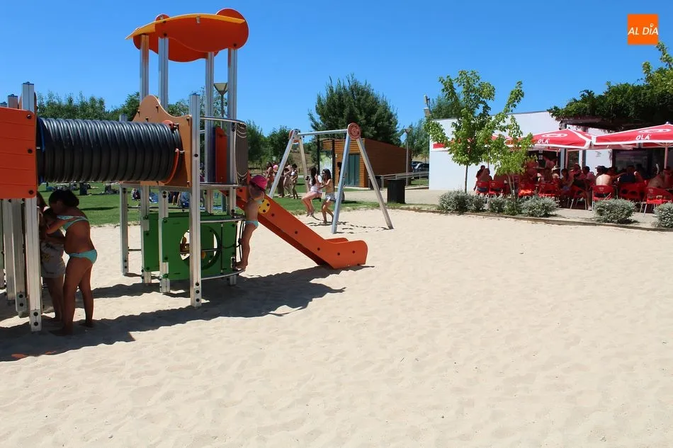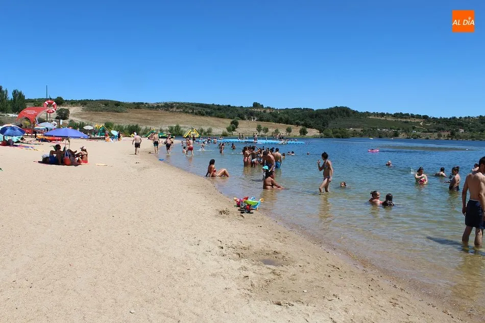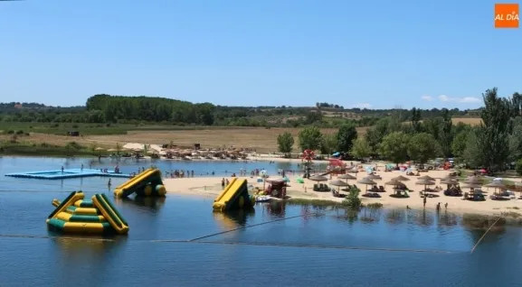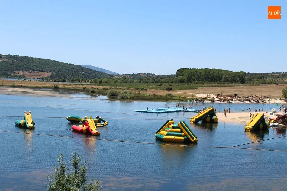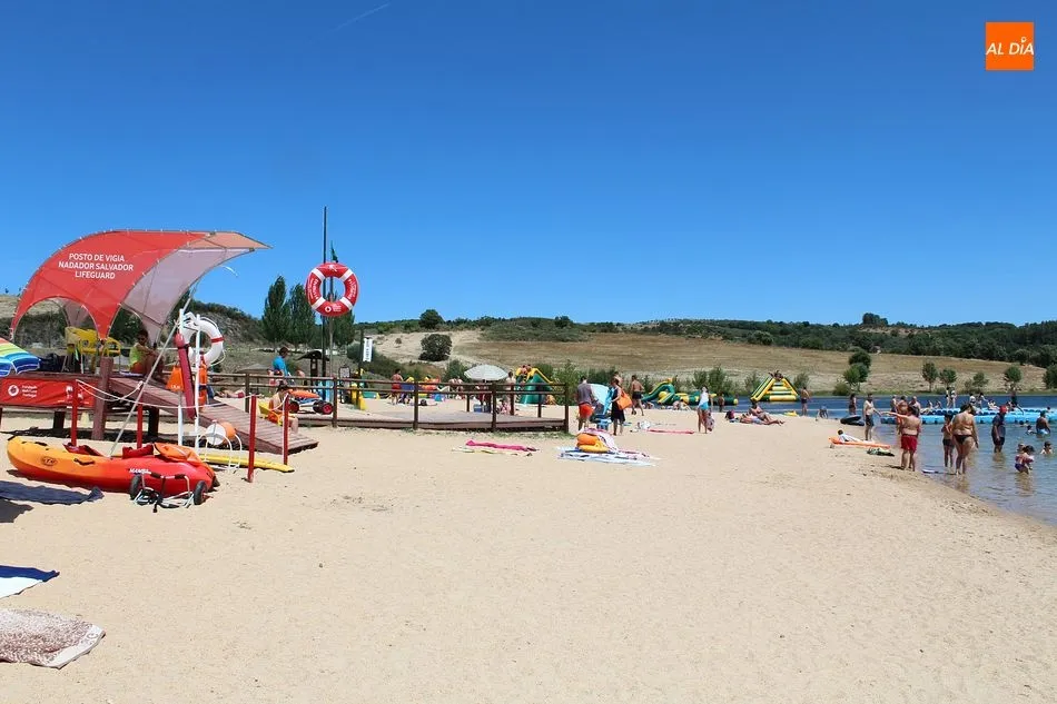 La temperatura del agua oscila estos días entre los 23 y los 25 grados, suficiente para que el chapuzón sea refrescante. Cuenta con un parque de juegos hinchable dentro del agua y una plataforma acuática. Hay socorristas y puesto de primeros auxilios. Es una playa fluvial sin corrientes.