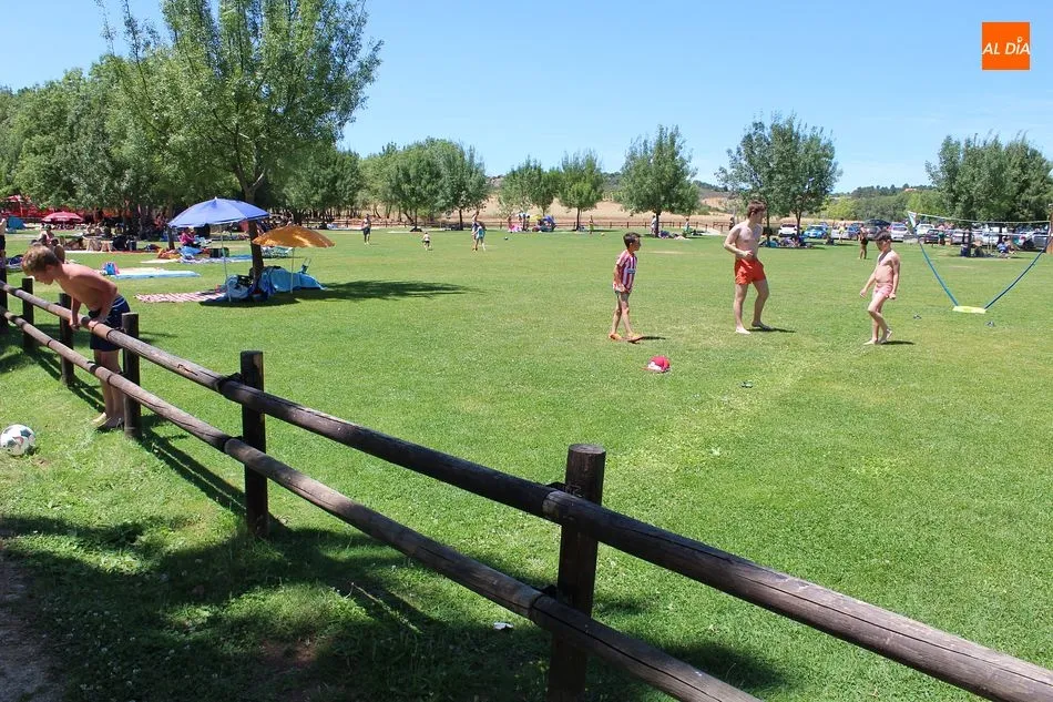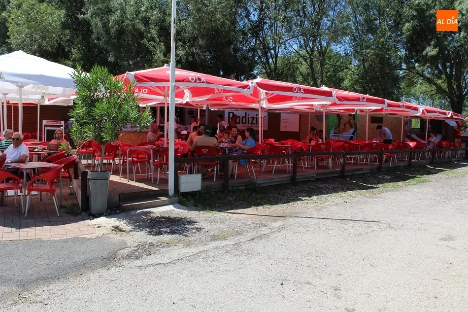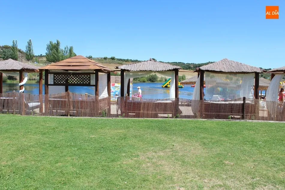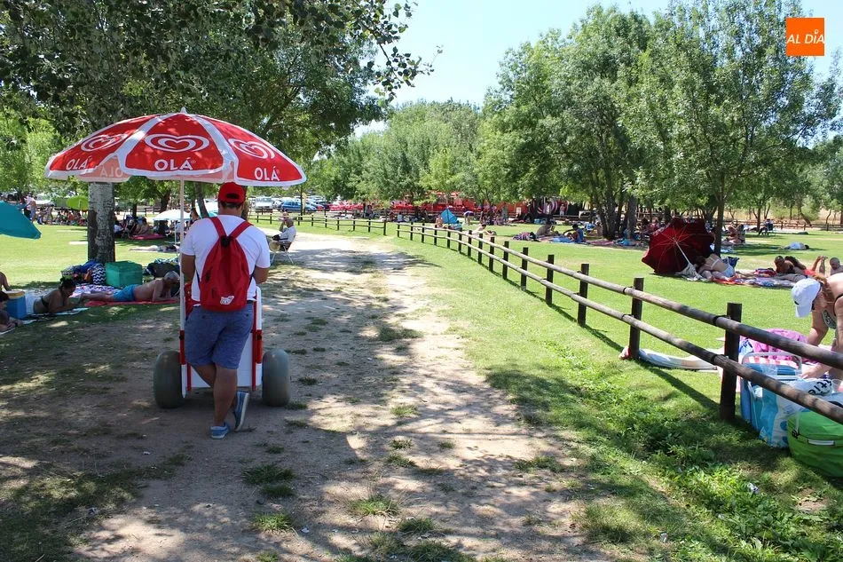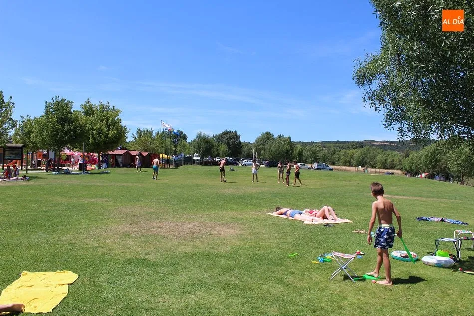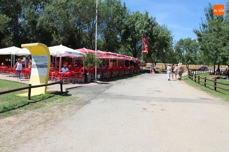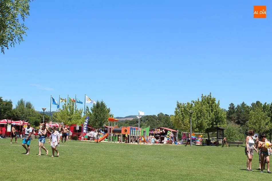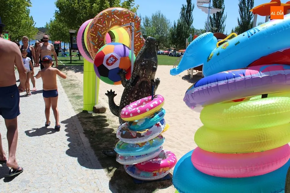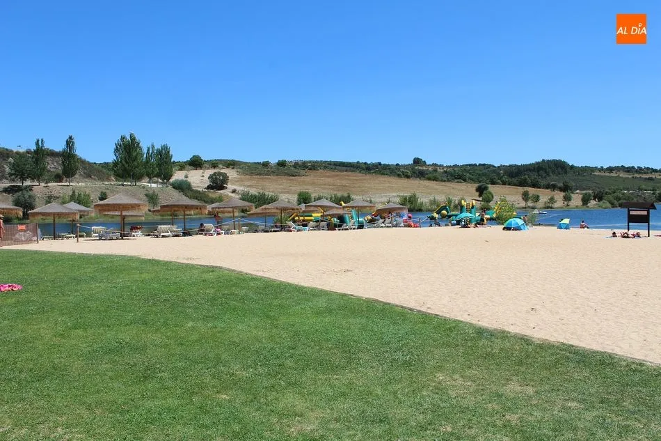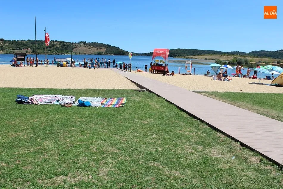 La temperatura del agua oscila estos días entre los 23 y los 25 grados, suficiente para que el chapuzón sea refrescante. Cuenta con un parque de juegos hinchable dentro del agua y una plataforma acuática. Hay socorristas y puesto de primeros auxilios. Es una playa fluvial sin corrientes.