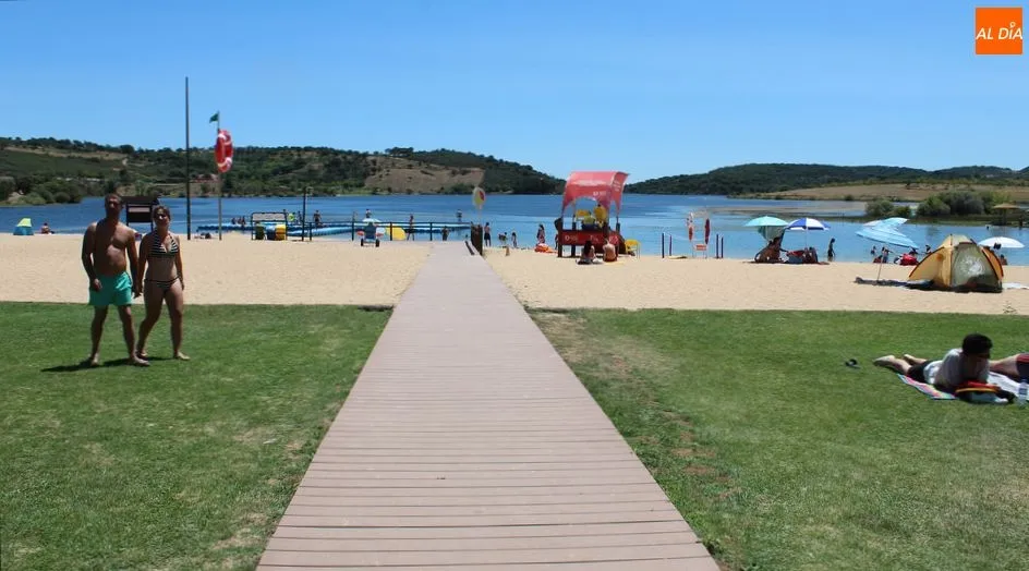 La albufeira do Azibo, en el concejo trasmontano de Macedo de Cavaleiros, a pocos kilómetros de Bragança, es uno de los espacios naturales más demandados durante el verano en el nordeste portugués, tanto por los habitantes de esta región, como por los vecinos zamoranos y por los muchos emigrantes portugueses que estos días regresan a su tierra de origen. Escuchar hablar en portugués, francés y español es lo habitual en esta playa, que son dos.