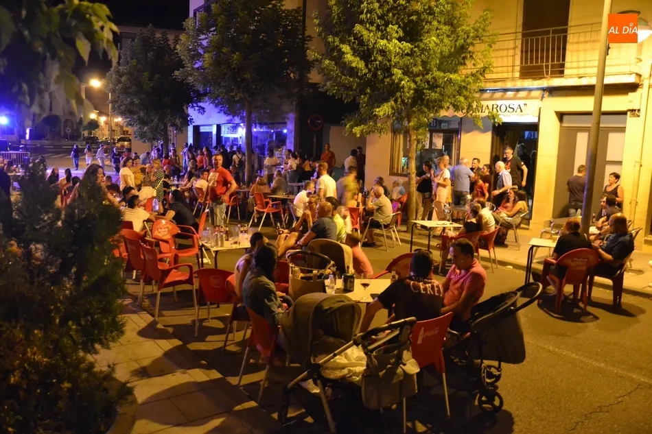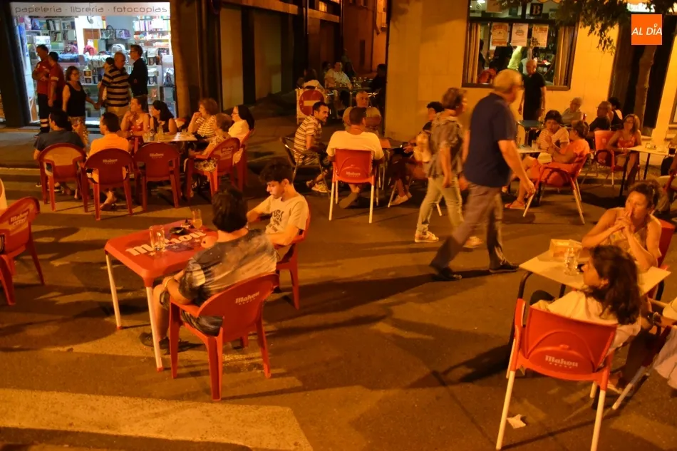 Fue en ese momento cuando los bares de esa vía desplegaron en mitad de la calzada sus terrazas, que estuvieron llenas durante todos los eventos nocturnos, promovidos por los siguientes establecimientos de hostelería del entorno: Camarosa, La Aldaba, B&N Kiss, El Paso, La Taberna Charra, y Yoanna Irish Pub.