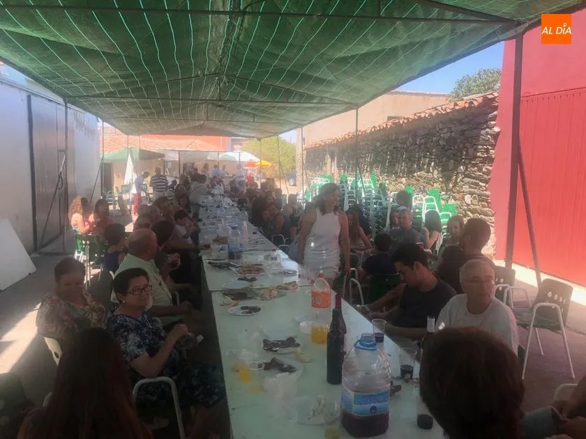 Igualmente ha sido muy concurrida la misa del domingo y la siguiente comida de pueblo en la plaza, una paella preparada por el restaurante Ruví, costumbre que cada vez se ve más afirmada. Es el espacio de encuentro y confraternización más señalado, el más querido, puesto que en él participan las familias y hay representación de todas las edades. Por la tarde en esta jornada del domingo se tuvo el consabido bingo, aprovechando la generosidad de tantas firmas comerciales de Alba, como también de tantos hijos del pueblo y amigos.