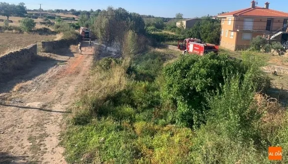 Dos dotaciones del Parque de Bomberos de Lumbrales han sofocado un incendio declarado en el casco urbano de esta localidad, próximo a una vivienda e instalaciones agroganaderas situadas en las afueras, concretamente en la calle Los Charcos.