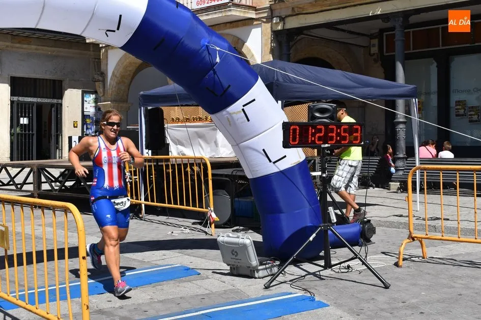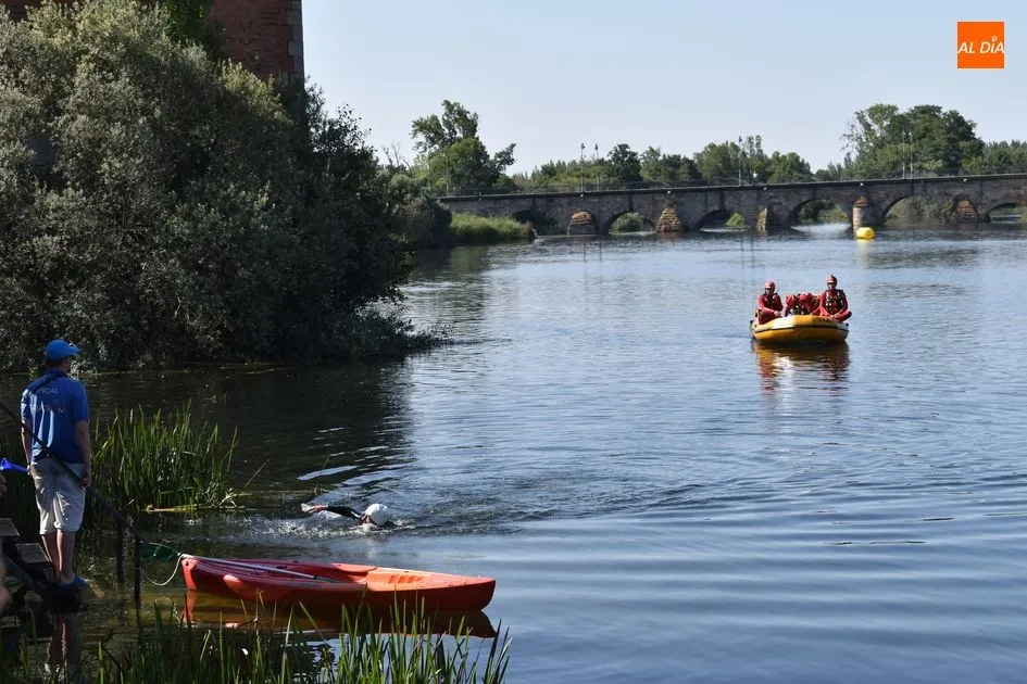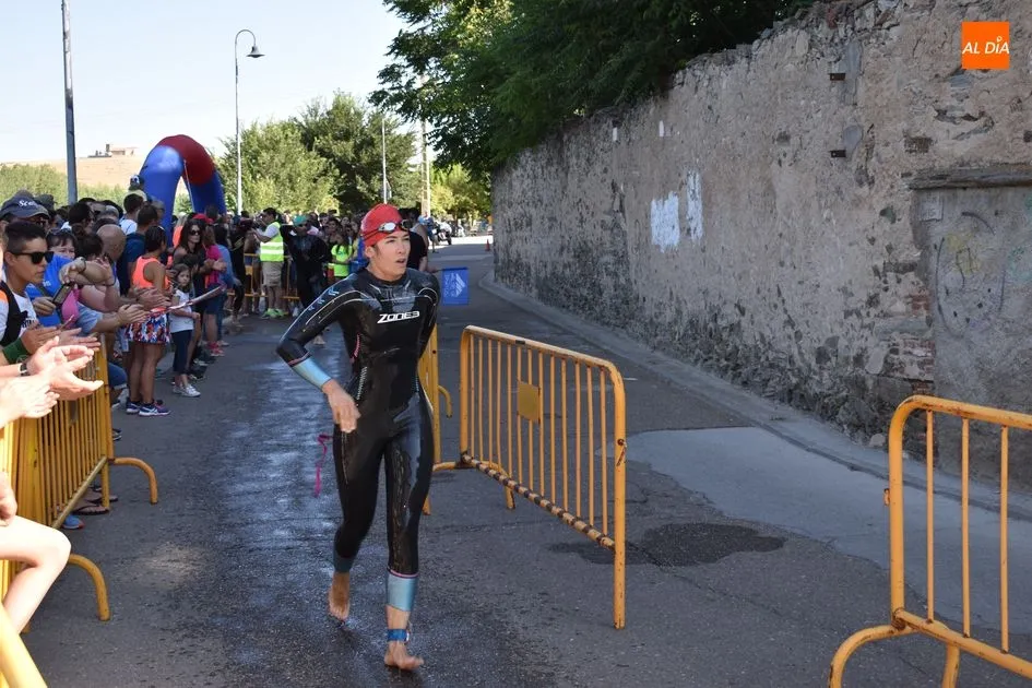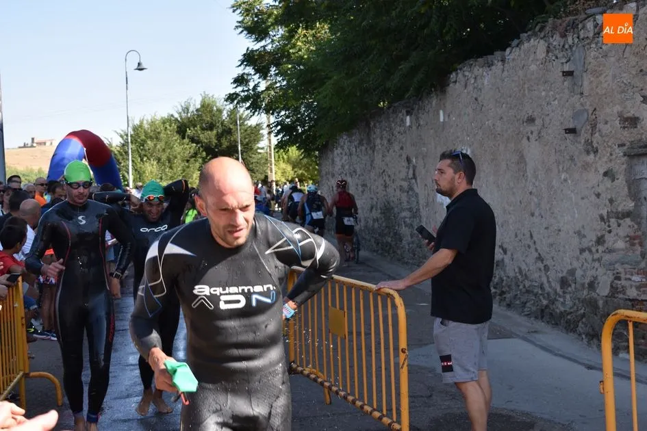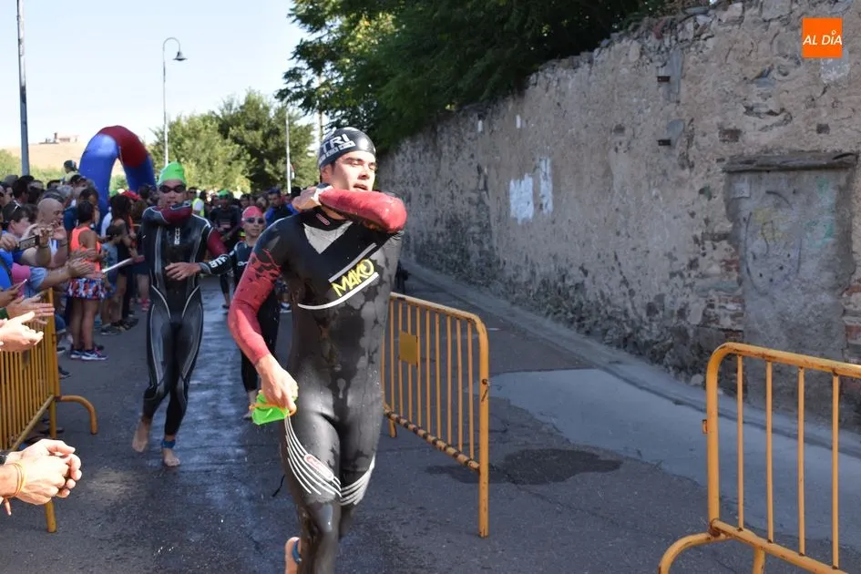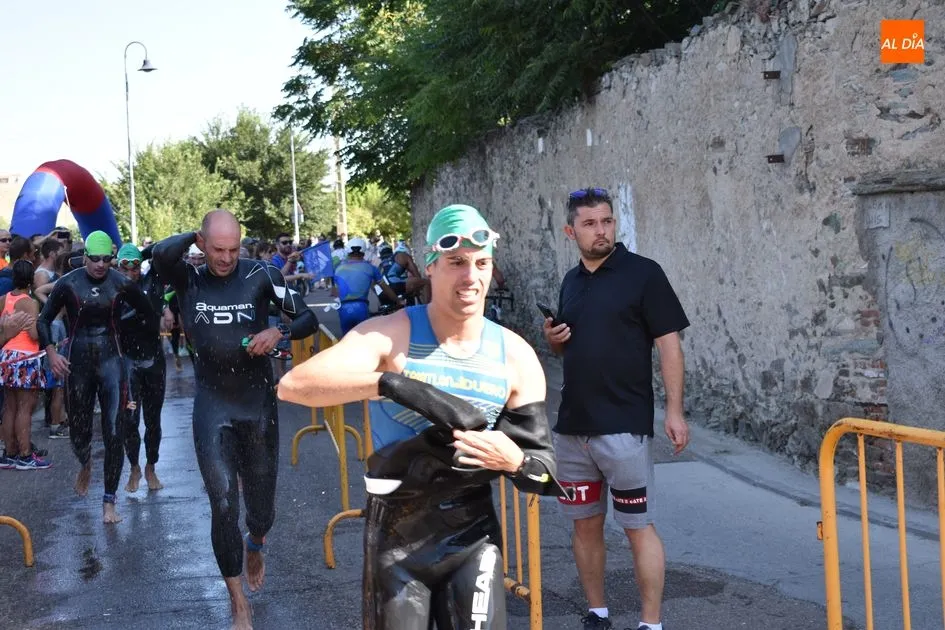 Los triatletas tuvieron que enfrentarse a 750 metros nadando por el río Tormes, 20 kilómetros en bicicleta y 5 kilómetros a pie
