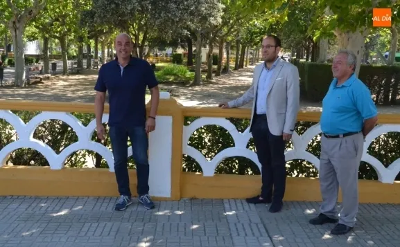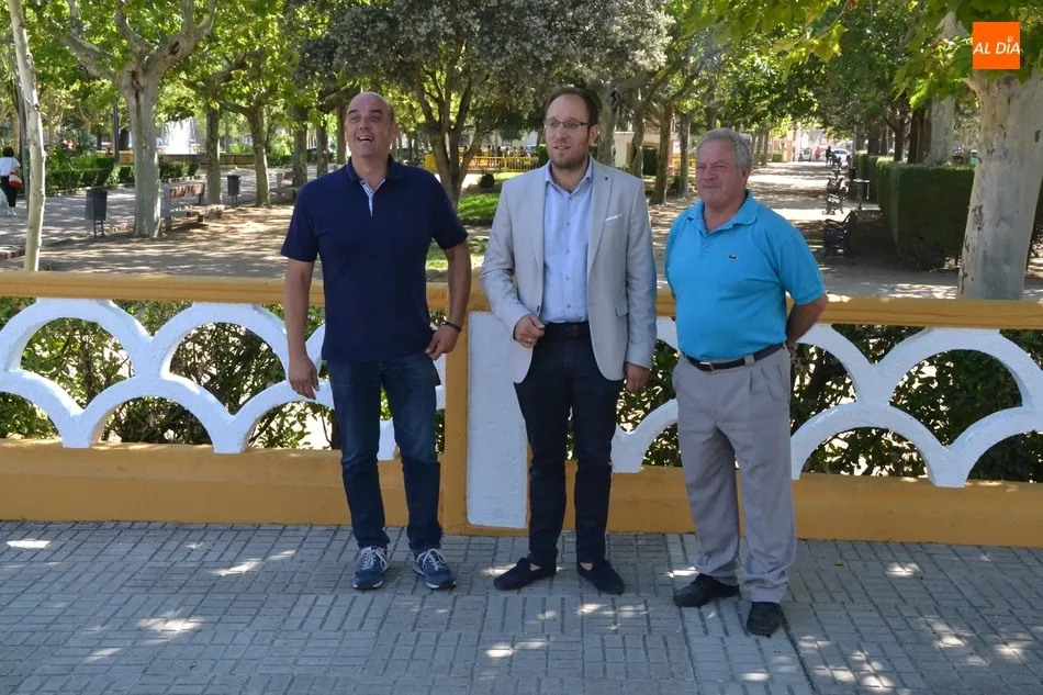 El alcalde de Ciudad Rodrigo Marcos Iglesias y los delegados de Obras y Parques, Ramón Sastre y José Manuel Jerez, se acercaron en la mañana del lunes al Parque de La Glorieta para presentar la nueva imagen de la valla del recinto, que según explicó Marcos Iglesias, no ha sido objeto de ?un mero repintado?, sino que se ha acometido ?un arreglo integral?.