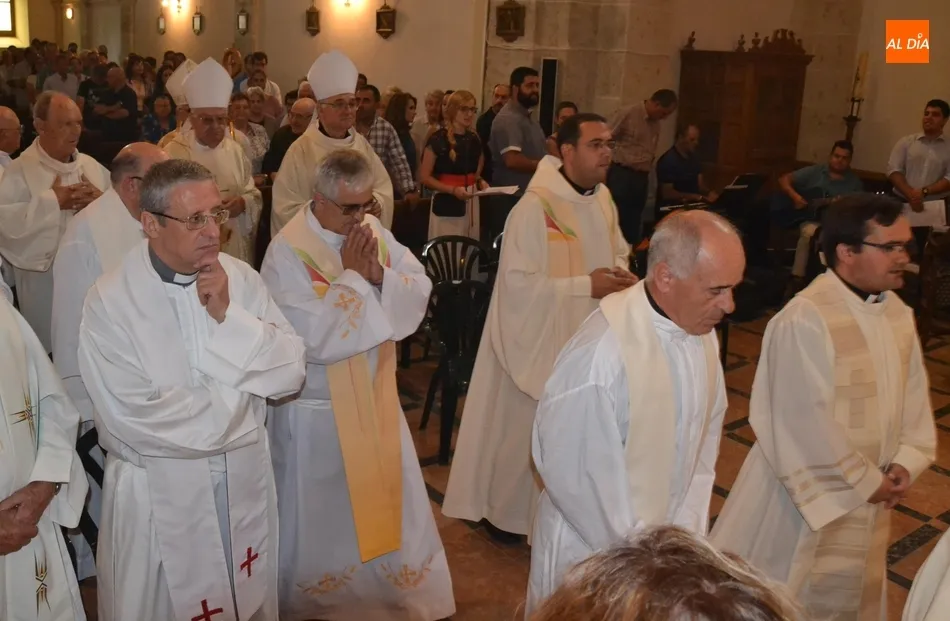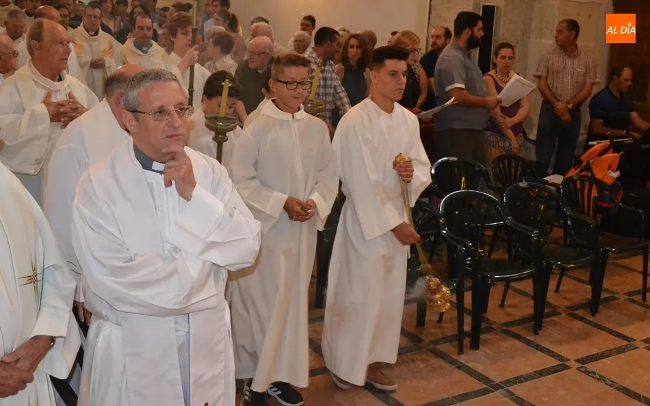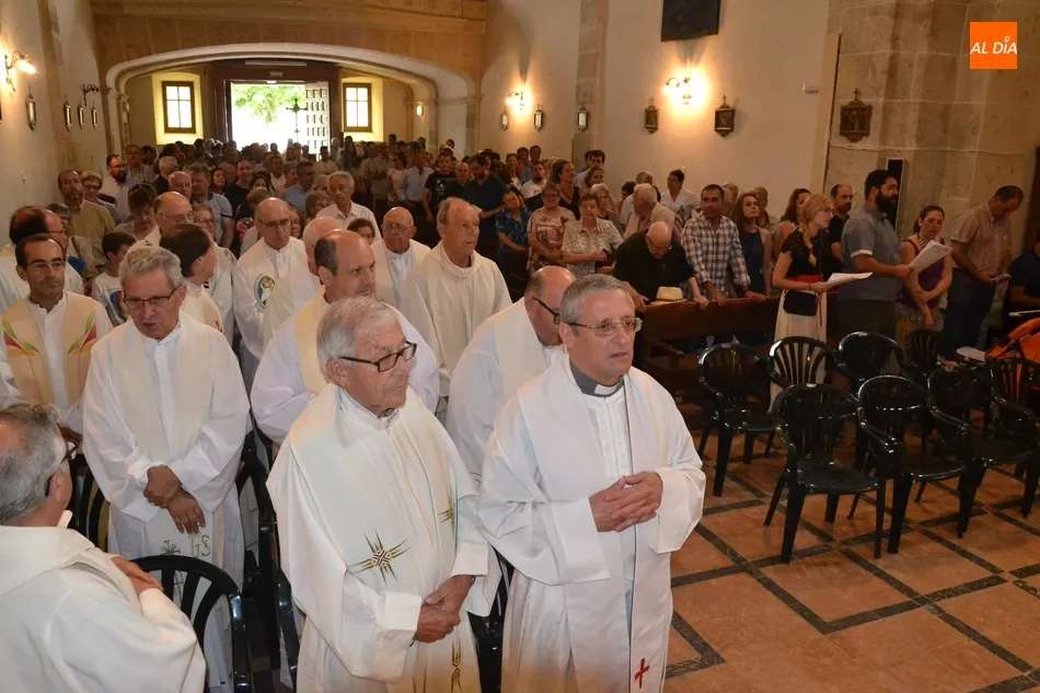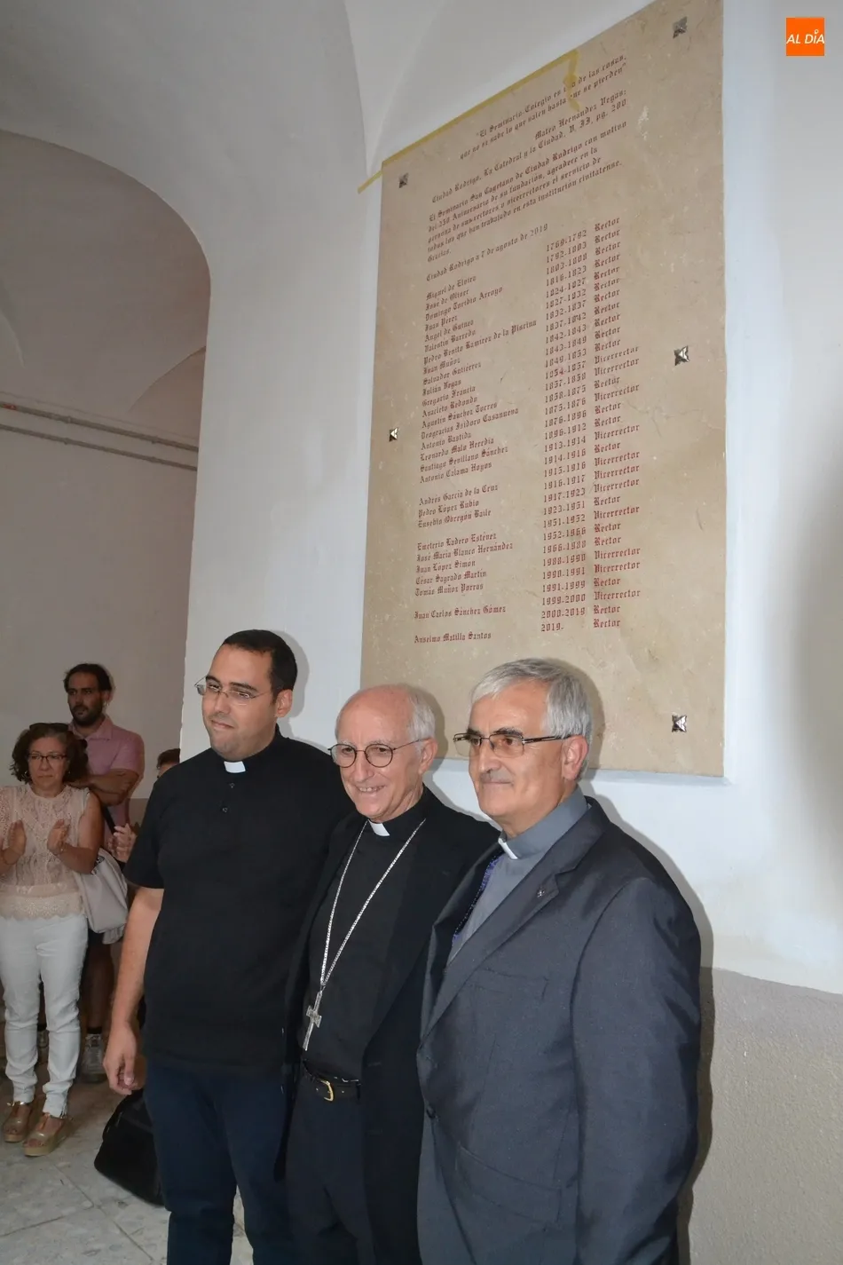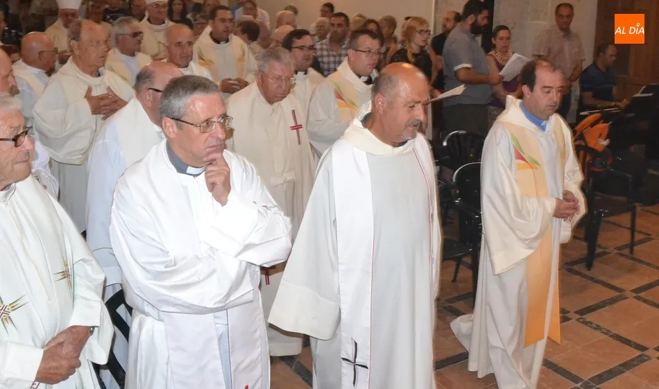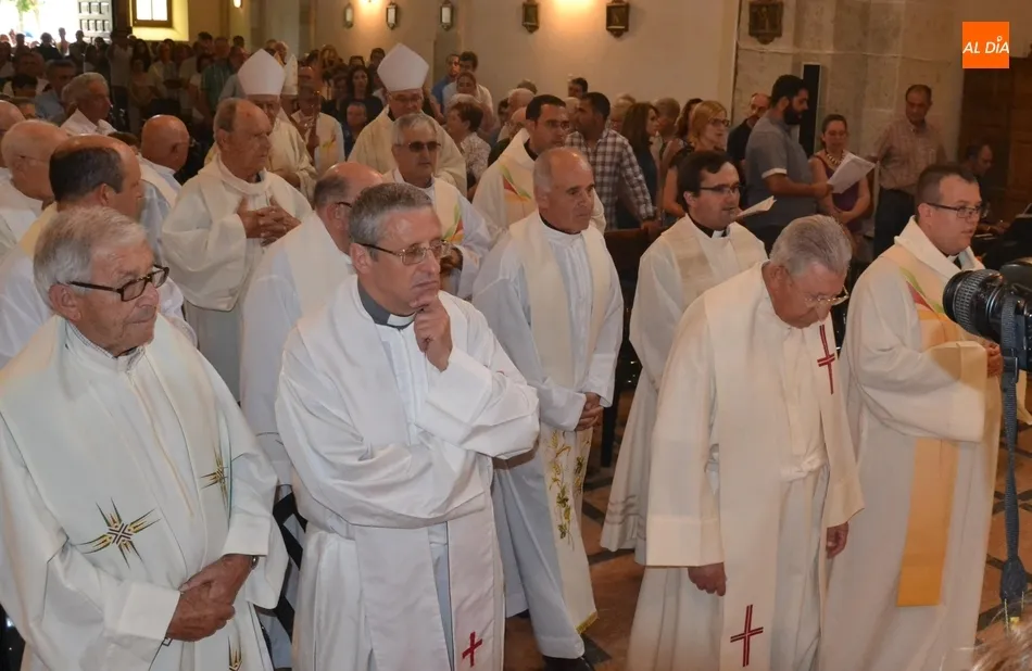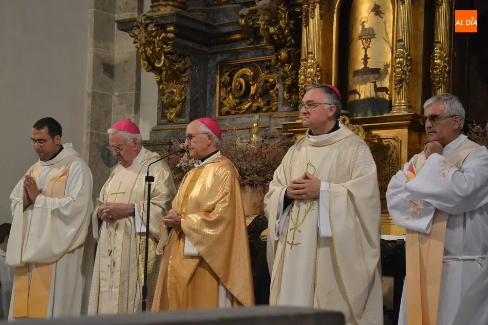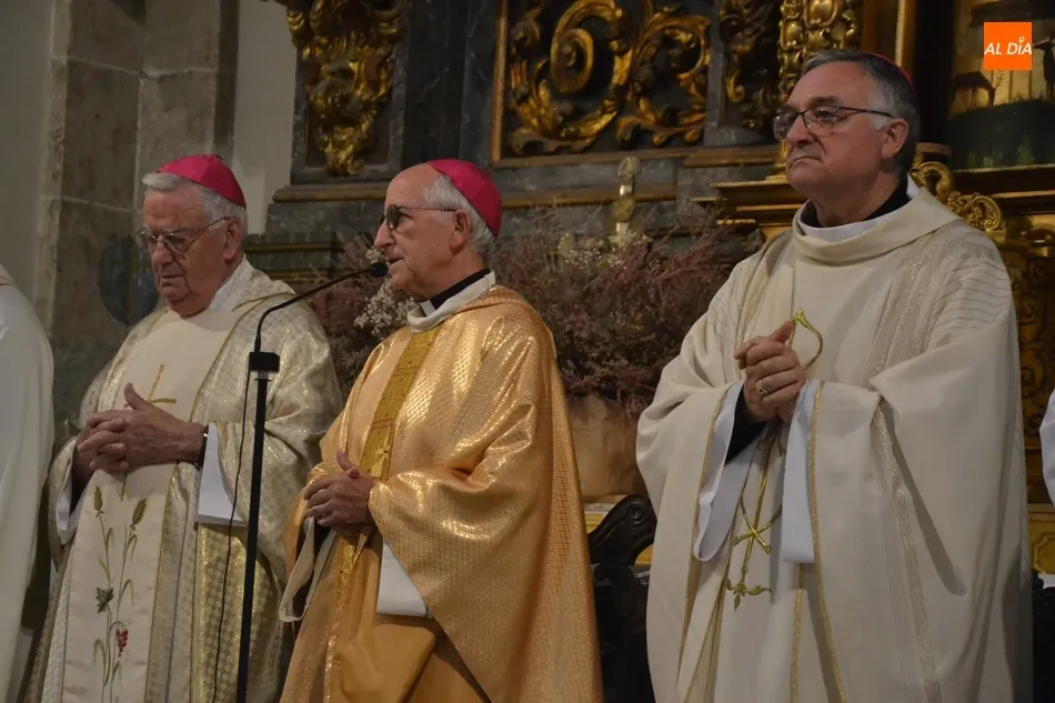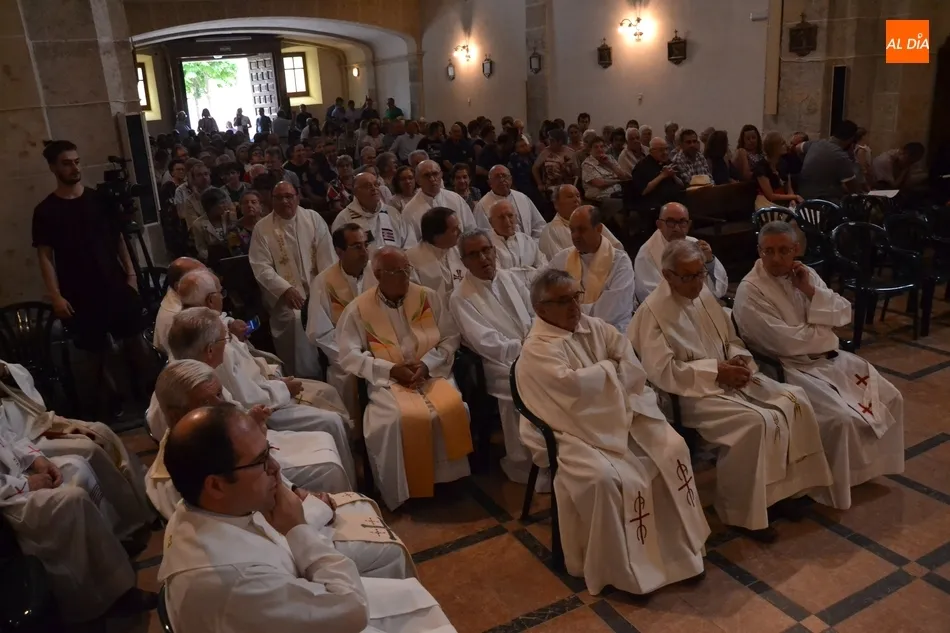 Para empezar, todos ellos se reunieron en la mañana del miércoles en la Capilla Mayor del Seminario para asistir a una eucaristía, que fue presidida por el Administrador Apostólico de la Diócesis de Ciudad Rodrigo, Jesús García Burillo, con la compañía del guinaldés José Sánchez, Obispo emérito de Sigüenza-Guadalajara; de Antonio Gómez Cantero, Obispo de Teruel-Albarracín; del actual Rector del Seminario, Juan Carlos Sánchez; y del futuro Rector de la institución a partir de septiembre, Anselmo Matilla.