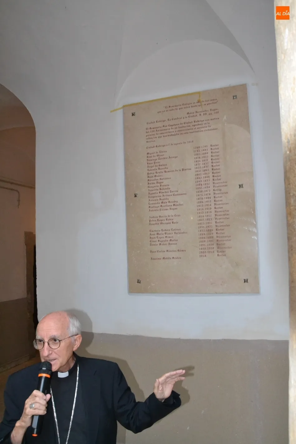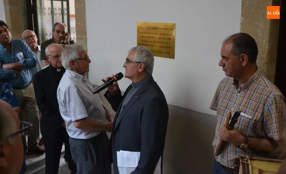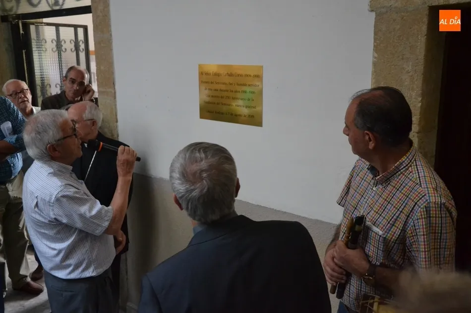 Fiesta por todo lo alto en el Seminario Diocesano para festejar sus 250 años de existencia   | Imagen 1Por un lado, se ha instalado una en recuerdo de un antiguo portero del centro, Eulogio Carballo Corvo. A modo de inauguración de la misma, pronunció unas palabras su hermano, el sacerdote José Manuel Carballo, mientras que José Ramón Cid interpretó una pieza musical ya que Eulogio Carballo le aficionó al mundo del folklore. En este punto, Antonio Gómez dio lectura a las antiguas reglas que tenía el Seminario. Por otro lado, se destapó una placa de mayor tamaño donde figuran los nombres de todas aquellas personas que han ejercido como rectoras o vicerrectoras del Seminario (ya aparece el nombre de Anselmo Matilla).