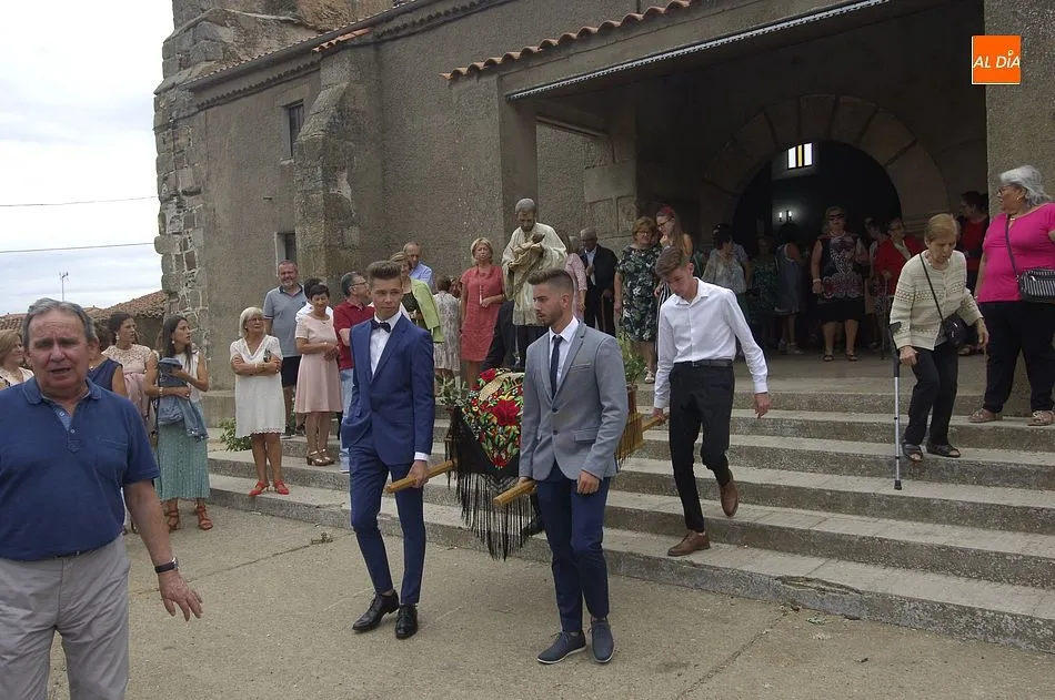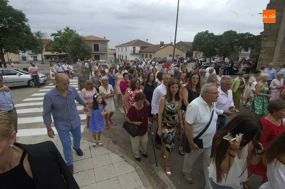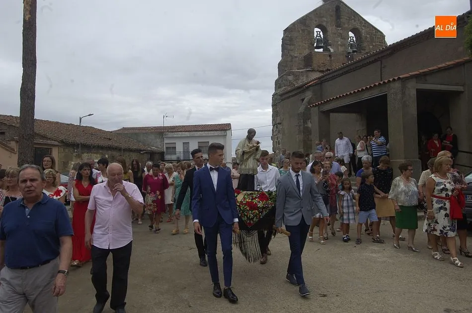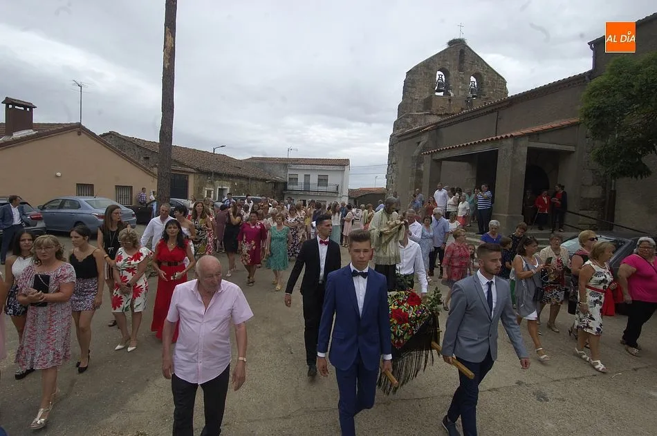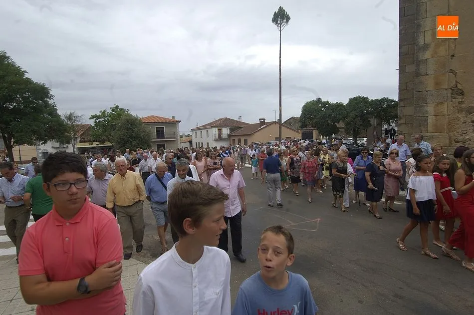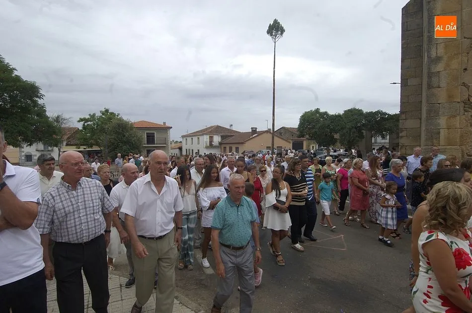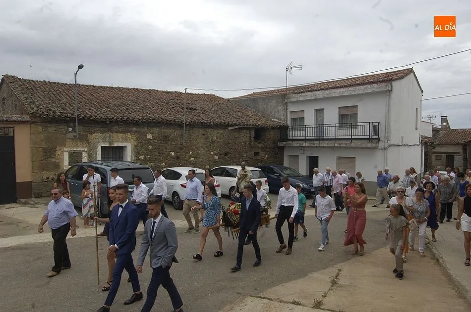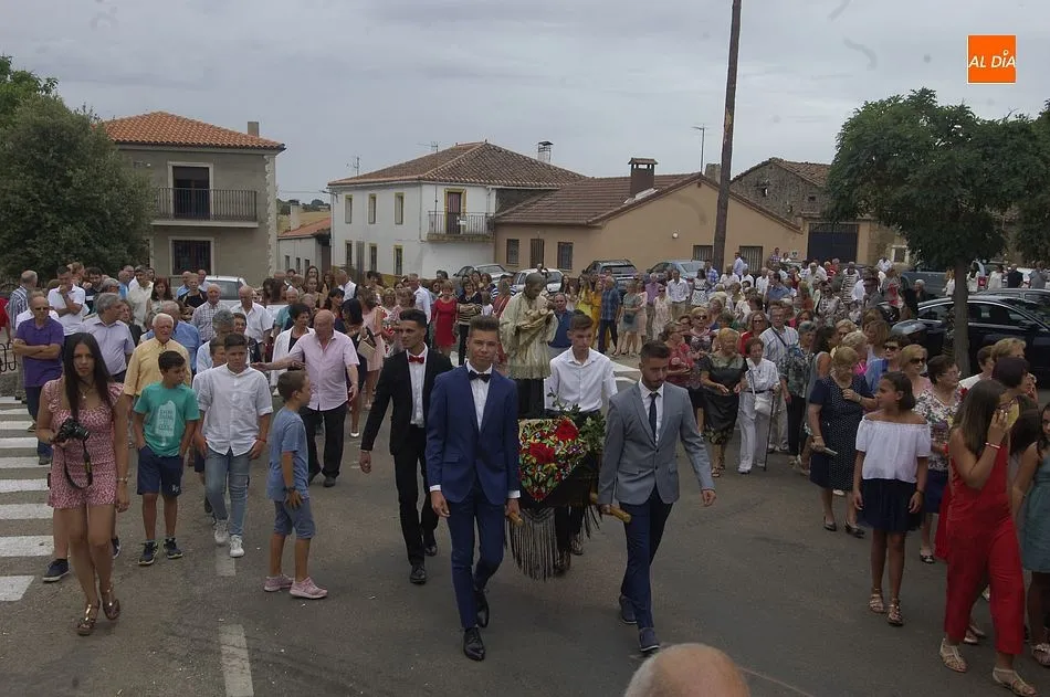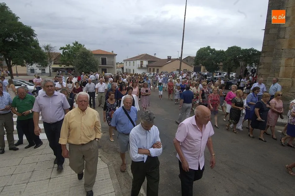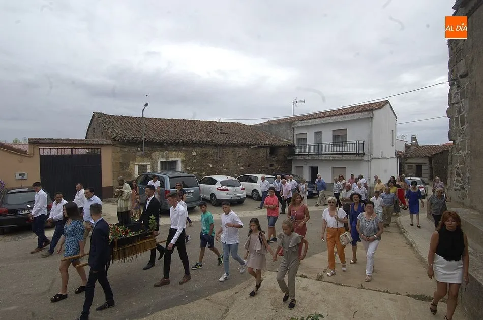 La gran mayoría de vecinos de El Sahugo participaron en la procesión, desarrollada con el cielo encapotado