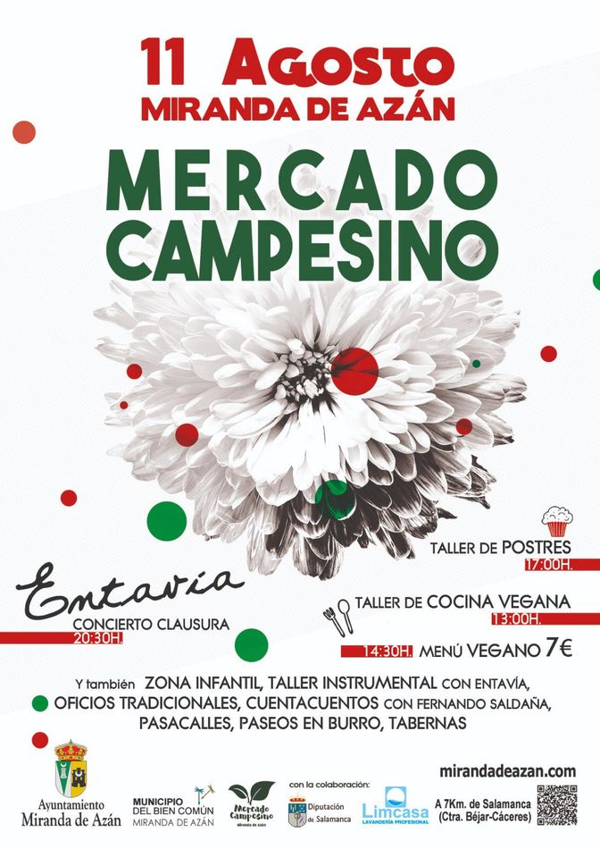 Miranda de Azán acogerá este domingo una nueva edición de su Mercado Campesino  | Imagen 1Miranda de Azán celebrará el 11 de agosto su tradicional Mercado Campesino con varias actividades. Entre ellas destacan dos vinculadas a la comida vegana, ya que a las 13 horas se ofrecerá un taller de comida vegana y, a las 14.30 horas, un menú vegano que costará 7 euros.
