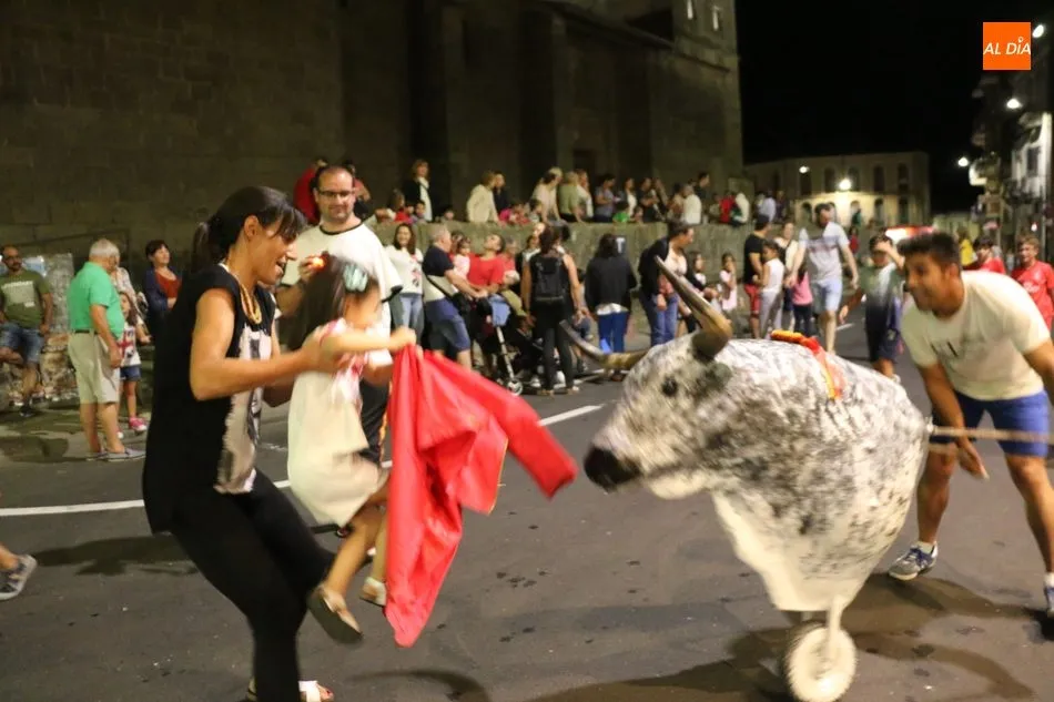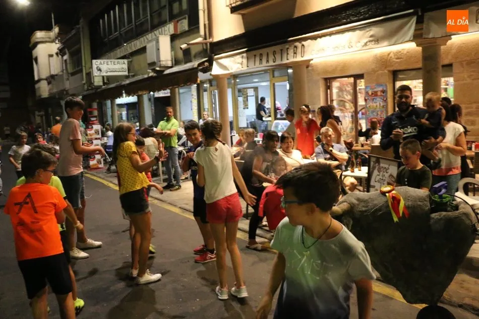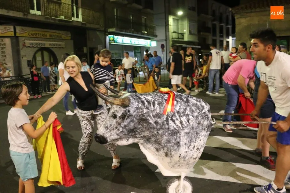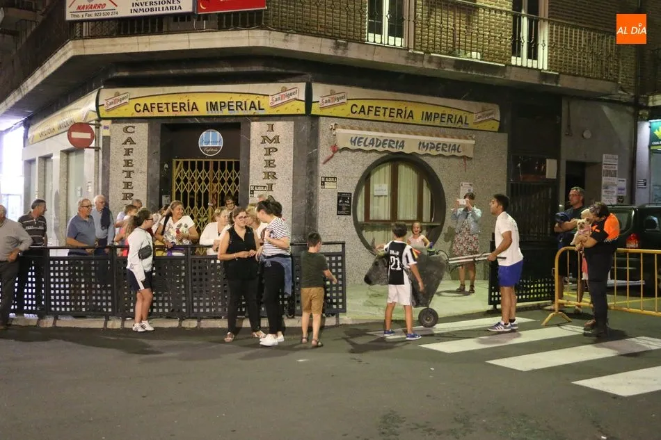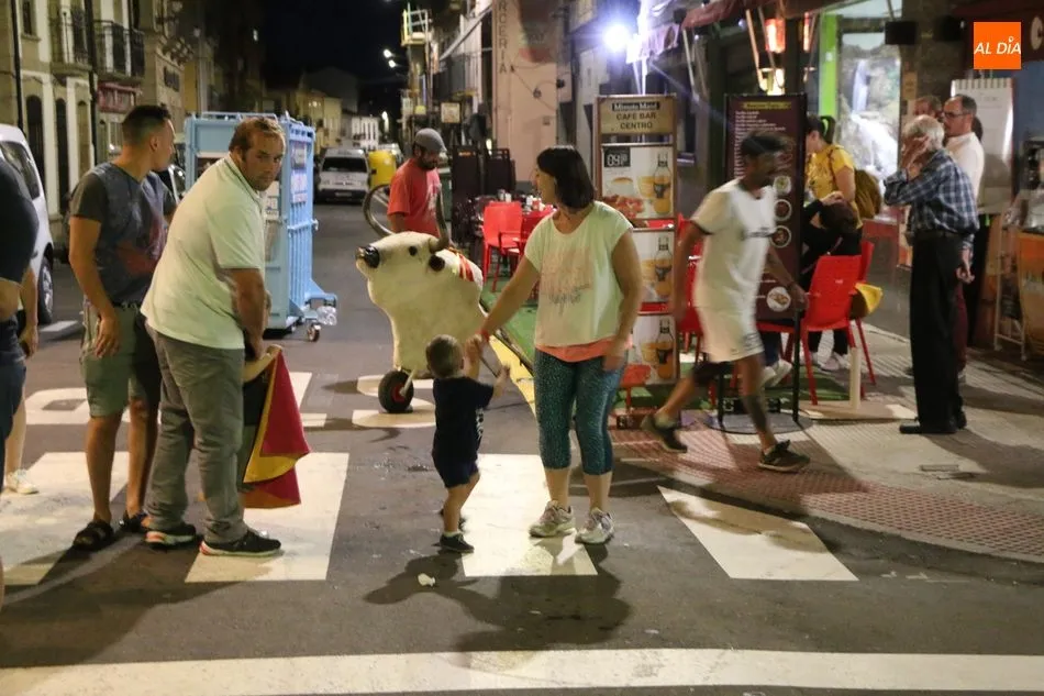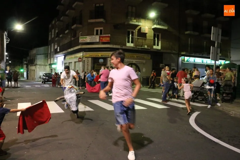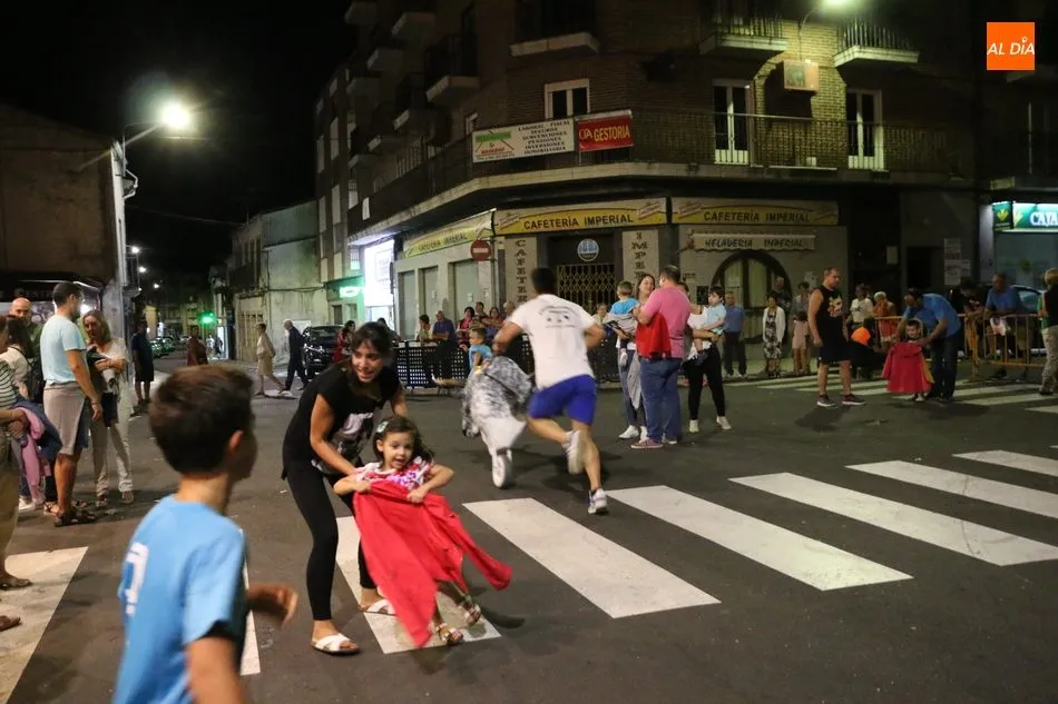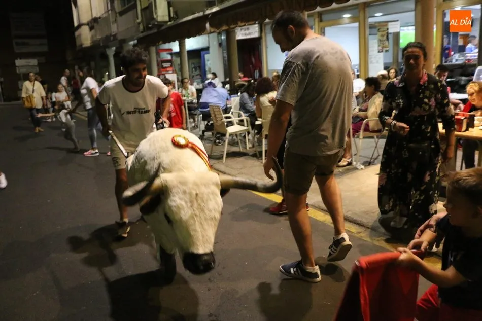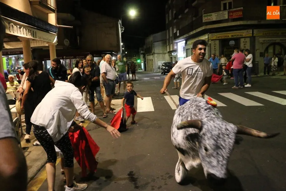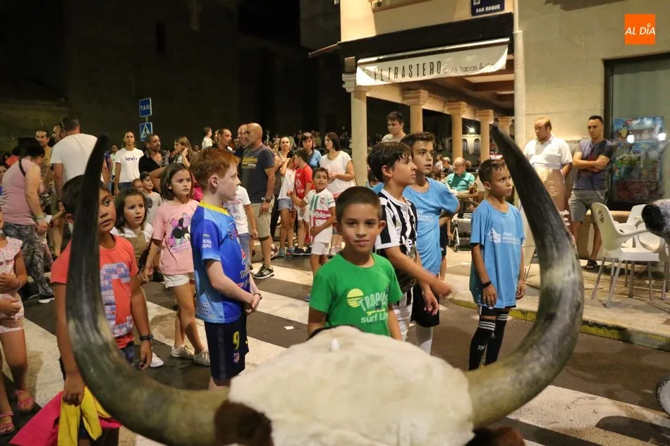 A las diez de la noche estaba anunciada la salida del primero de los encierros, y allí aguardaban los más valientes con muletas y capotes para hacer pasar a los morlacos de Carlos Huertos, todo un espectáculo que además de divertir crea afición a la fiesta de los toros, especialmente a los festejos populares.